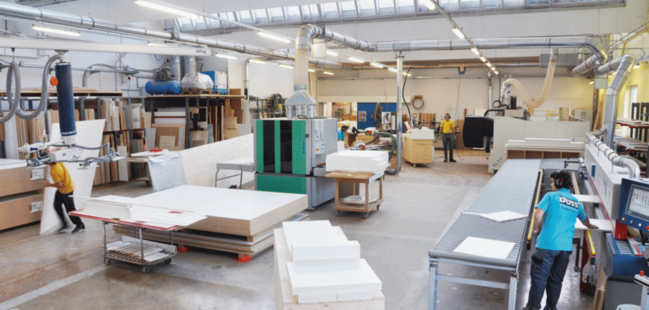 Beim Bearbeitungszentrum (BAZ) kam dies ebenfalls vor: Die Schreinerei wollte eine 5-Achs-Maschine. Aber bereits bei den Begriffen gab es hier unterschiedliche Auffassungen: Die einen offerierten ein Modell, dessen fünfte Achse nur eine Stellachse war. «Unsere Forderung war aber eine «echte» 5-Achs, bei der man alle Achsen interpolierend einsetzen kann», sagt Duss. Ausserdem stellte das Unternehmen fest, dass für ihre Produktion die Verfahrgeschwindigkeit nicht sehr entscheidend ist. Ein platzsparendes BAZ mit eingeschränkter Geschwindigkeit, das ohne Trittmatten auskommt, war also durchaus denkbar.