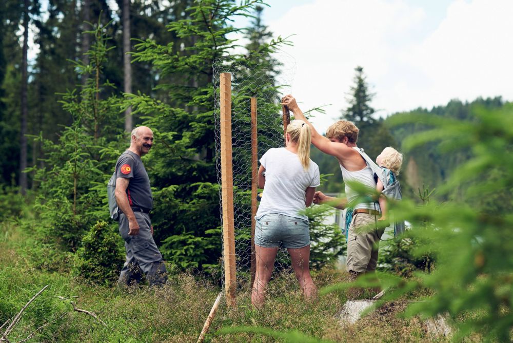 Am Fusse des Säntis ging es Anfang Juni emsig zu und her. Auf der Appenzeller Potersalp trafen sich über 100 Menschen mit einem einzigen Ziel: Sie alle wollten sich die Hände schmutzig machen. Eingeladen hatte die Weishaupt AG Innenausbau. Der Wald dort auf 1300 Meter über Meer hat für das Traditionsunternehmen eine spezielle Bedeutung, denn von dort bezieht es seit vielen Jahren sein Holz. In dieser symbolträchtigen Umgebung wurde darum Grosses gefeiert: Die Weishaupt AG Innenausbau begeht 2018 ihren 100. Geburtstag.
