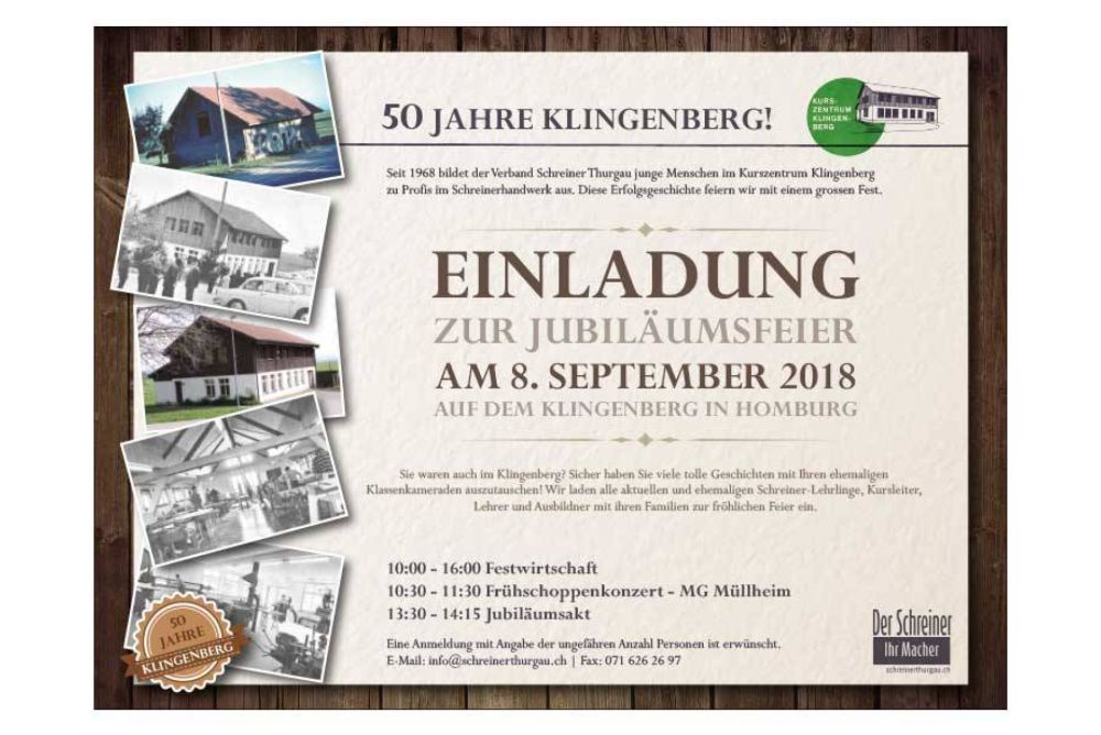 Am 18. Oktober 1968 wurde auf dem Schloss Klingenberg TG in einem ehemaligen Pferdestall das Kurszentrum des Verbandes thurgauischer Schreinermeister und Möbelfabrikanten feierlich aus der Taufe gehoben. Die Einweihung des Kurszentrums kam einer Pioniertat gleich, war doch der Klingenberg dazumal schweizweit, neben Samedan, das einzige seiner Art.
