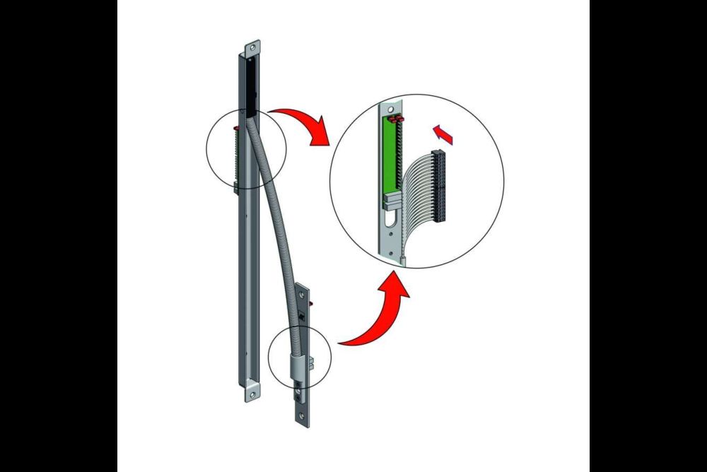 Türsysteme werden komplexer. Immer häufiger sind statt einem gleich mehrere elektrische Geräte in einem Türblatt verbaut. Dafür sind zwei oder mehr Kabelübergänge erforderlich. Das bedeutet mehr Montageaufwand, Platzprobleme aufgrund der Türbänder und Schwierigkeiten bei der Zulassung von Feuerschutztüren. Die Assa Abloy Schweiz AG hat dafür mit den 20-poligen Kabelübergängen eine platzsparende Lösung. Sie vereint alle Funktionen in einem einzigen Element. So bleibt die Stabilität der Tür erhalten und wird nicht durch mehrere Kabelübergänge geschwächt.