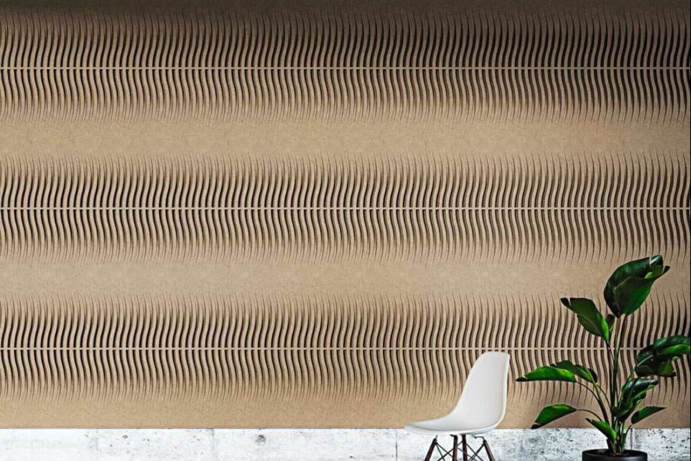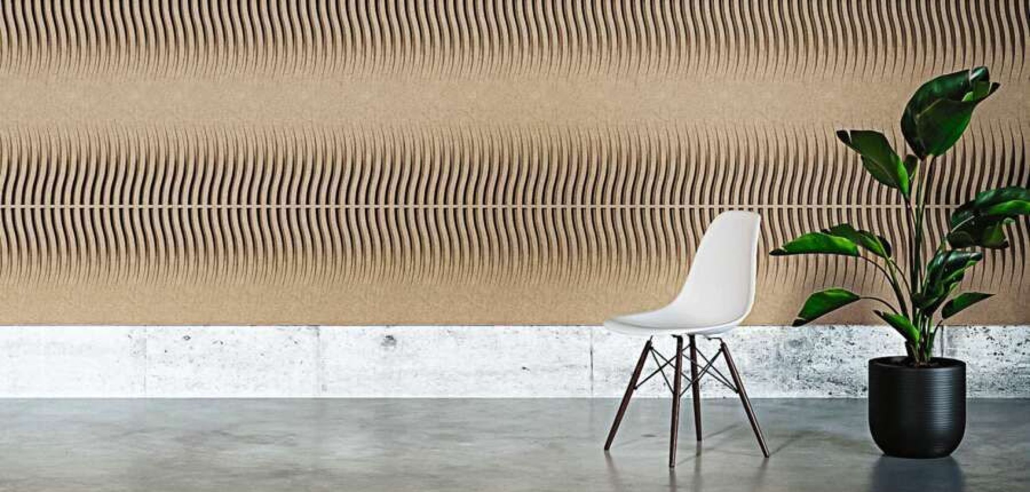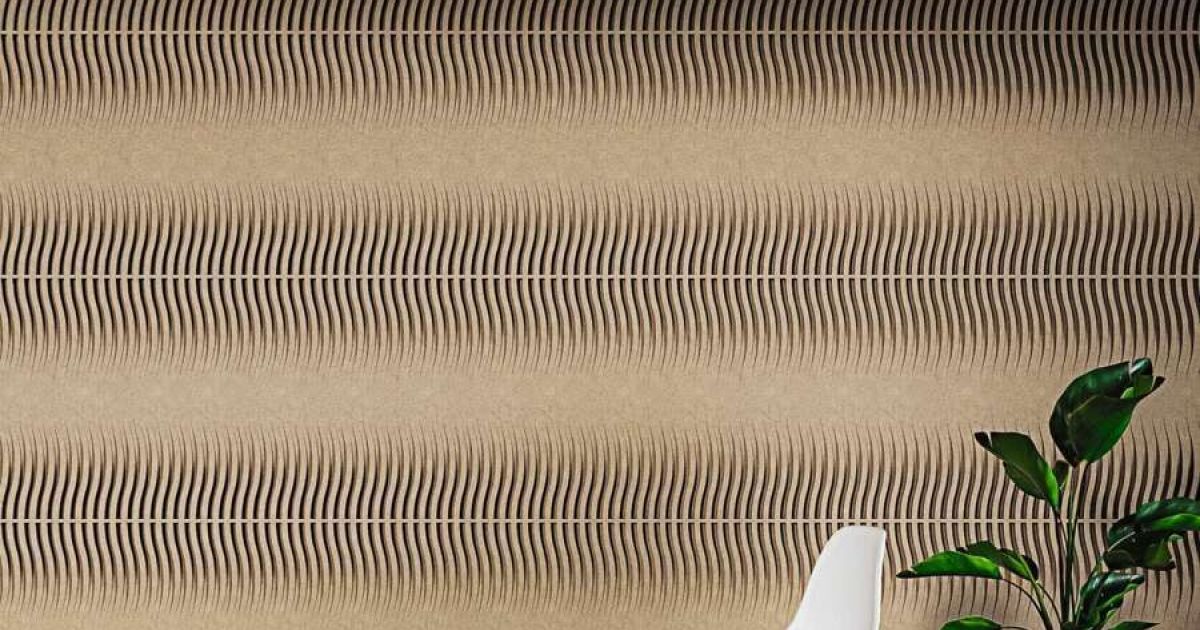 Mit «EchoLoom» stellt Echojazz ein dreidimensional strukturiertes Wandoberflächensystem vor, das laut Hersteller raumakustische Wirkung mit einer gestaltbaren Wandverkleidung kombiniert. Das grossformatige Paneel mit 1200 × 2650 mm besteht aus 12 mm starkem «EchoBoard», einem formstabilen Akustikmaterial auf PET-Basis mit Recyclinganteil. Vertikal verlaufende Strukturelemente werden in präziser Handarbeit in das Paneel eingewebt und bilden eine stabile, dauerhaft formhaltige 3D-Struktur. Die räumliche Oberfläche reduziert seitliche Schallreflexionen an Wandflächen und verbessert insbesondere die Sprachverständlichkeit in Besprechungs-, Büro- und Aufenthaltsbereichen. Anders als flache Absorber beeinflusst die Struktur zusätzlich die Schallverteilung im Raum, ohne die Wand optisch zu dominieren. Die Montage erfolgt über das werkzeuglose Stecksystem des «EchoBaffle Wall»-Systems. Die leichten Module werden eingeklipst, können einzeln ausgetauscht und zu durchgehenden Wandflächen kombiniert werden. Eine Sonderkonstruktion ist nicht erforderlich, wodurch sich das System auch auf bestehenden Wänden einsetzen lässt. «EchoLoom» ist in drei Strukturen erhältlich: «Spine», «Wave» und «Gradient». Die Oberfläche bleibt sichtbar und übernimmt gleichzeitig akustische Funktion und Wandgestaltung.