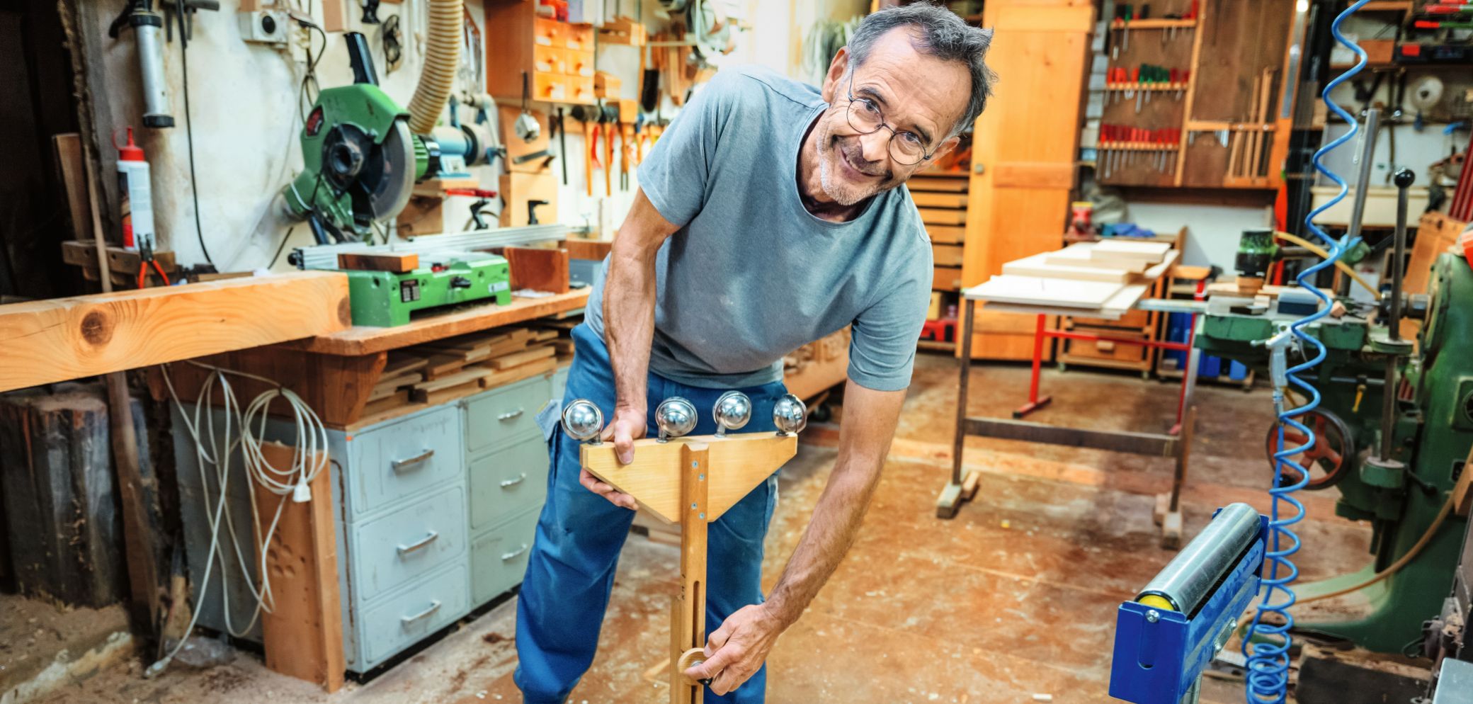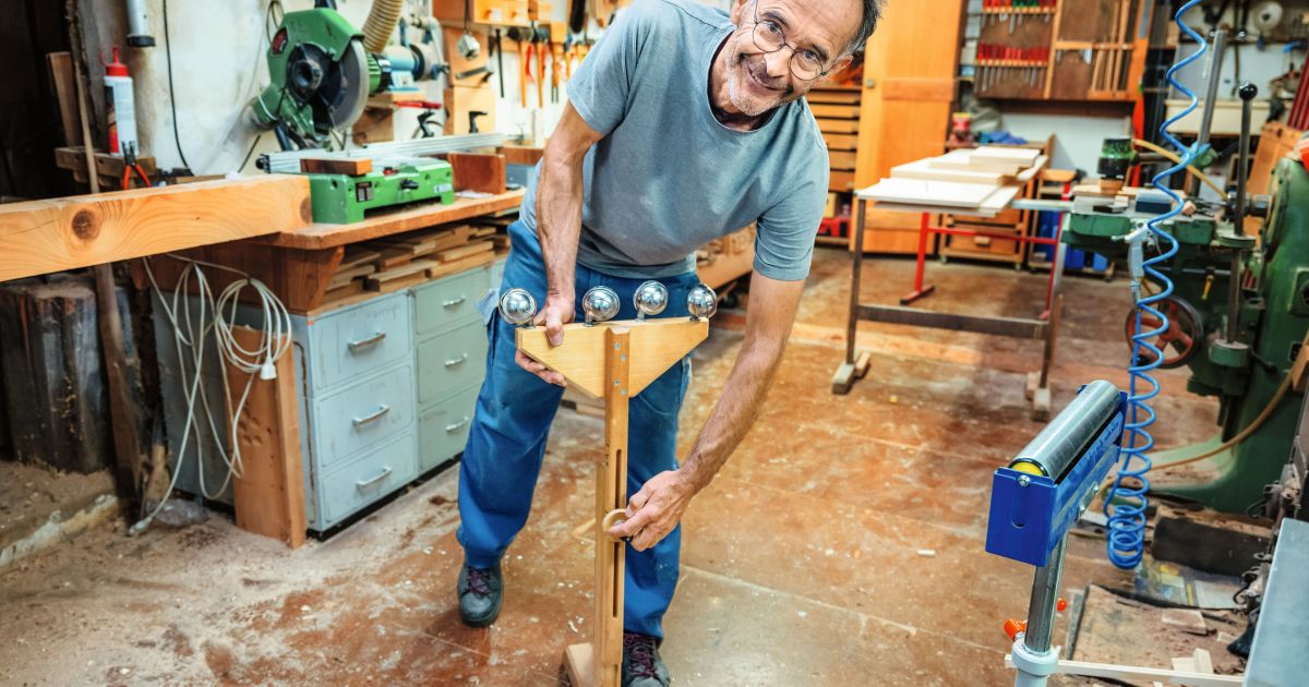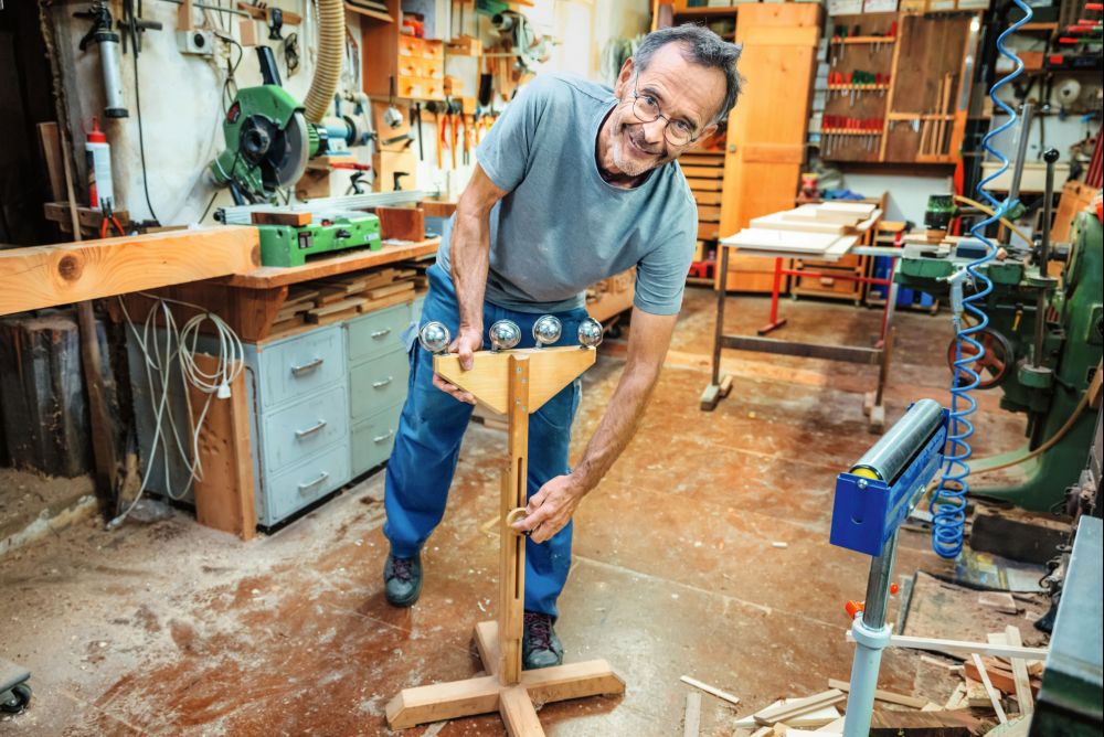 Stefan Suhner (68) in seiner Werkstatt mit einem selbst kreierten Rollbock. Bild: Caroline Mohnke