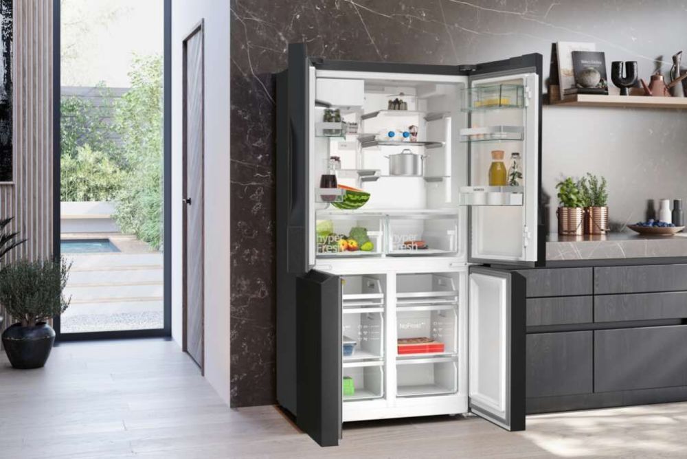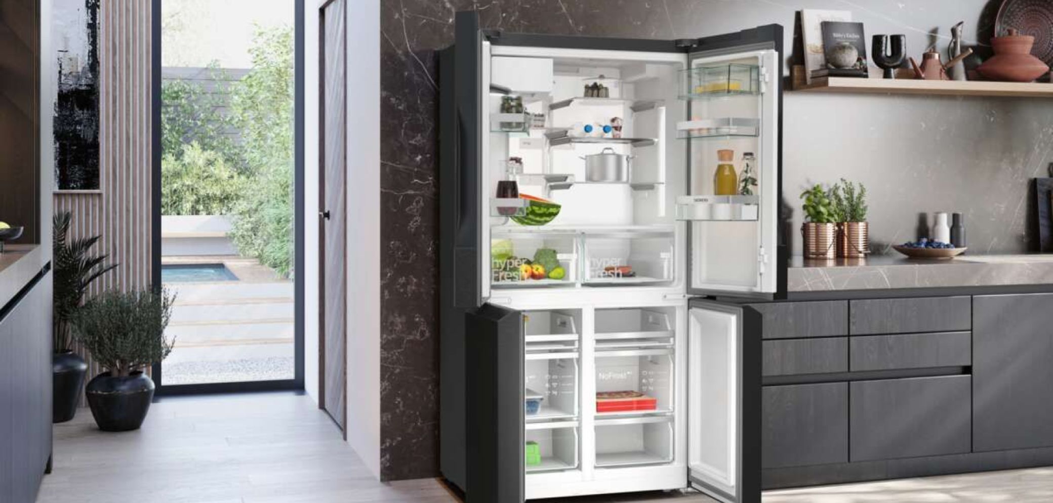 Die neue «iQ700» Multidoor-Kühl-Gefrier-Kombination von Siemens «Studioline» liefert fünf Kilogramm Eis pro Tag. Damit schafft ihr integrierter Eisspender laut Hersteller mehr als jeder andere im europäischen Markt. Der Kühl-GefrierSchrank «KF96DPXEA» bietet 574 Liter Lagerraum, davon allein 375 Liter im Kühlteil. Darin findet nicht nur der gesamte Wocheneinkauf Platz, sondern er hält auch deutlich länger. Denn das Frischesystem «hyperFresh ‹0°C›» lagert Gemüse bei höherer Luftfeuchtigkeit und Fisch sowie Fleisch bei extra niedrigen Temperaturen. Beim Eis- und Wasserspender kann zwischen Crushed Ice, Eiswürfeln und gekühltem Wasser gewählt werden. Ein Festwasseranschluss mit Filtersystem sorgt für Nachschub und garantiert frisches, gefiltertes Wasser und Eis. Im Innenraum zeigt sich die praktische Seite des Designs: Durch flexible Lösungen kann der Stauraum an persön-liche Bedürfnisse angepasst werden. Im Aussenbereich strahlt das dunkle Design Ruhe und Souveränität aus.