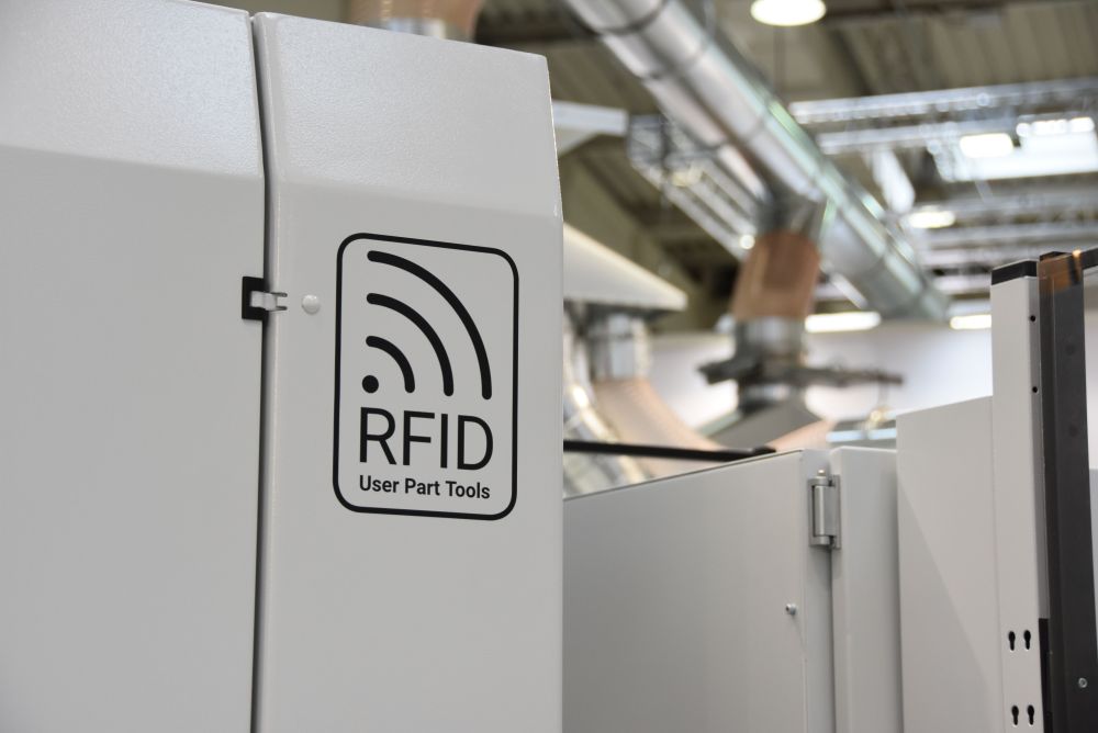 Unter dem Namen RFID-Factory steht eine Zusammenrabeit zwischen Abaco und Heseemann. RFID steht für radio-frequency identification, was übersetzt so viel heisst wie: Identifizierung mit Hilfe elektromagnetischer Wellen. Diese ermöglicht eine Identifikation und Datenauslesung mittels eingefrästem RFID-Chip. Das Werkstück stellt also seine Daten nicht nur wärend dem Produktionsprozess, sondern auch nachträglich für die Logistik und den Gebruach zur Verfügung.