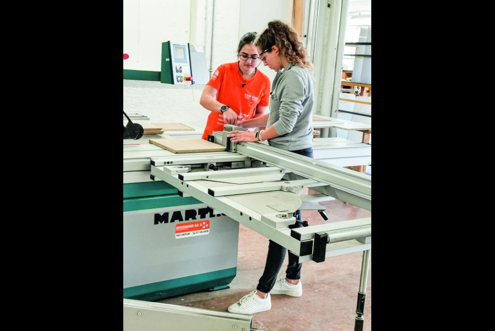 Die Scheinwerfer sind platziert und die Protagonistinnen tragen Mikrofone. Samanta Kämpf, Schreinerin und frische Silbermedaillengewinnerin an den World Skills in Kazan, hat einen besonderen Arbeitstag: Sie stellt der Studentin Irina Bieli den Schreinerberuf vor.