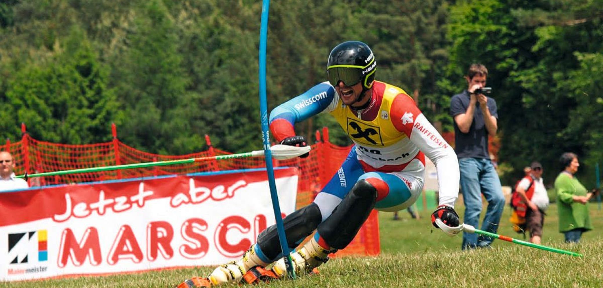Der 27-jährige Schreiner Mirko Hüppi ist der beste Grasskifahrer der Schweiz.