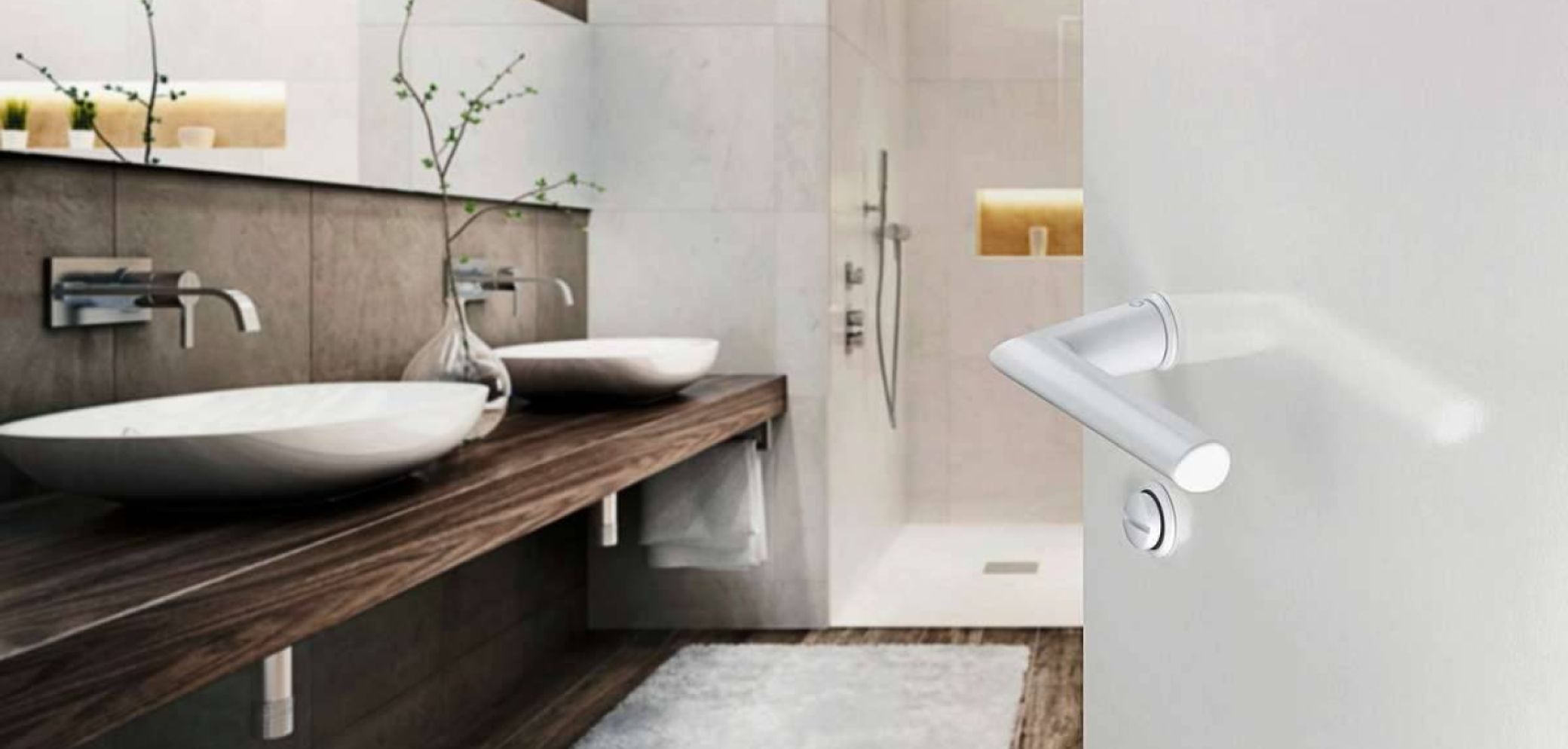 Die Mini-Rosetten von Hoppe setzen Türgriffe ganz neu in Szene. Durch die radikale Formreduzierung sind sie kaum noch an der Tür wahrnehmbar, und es ergibt sich ein völlig neues Zusammenspiel von Griff und Tür. Es gibt die Innentürgarnituren mit den Mini-Rosetten in verschiedenen Materialien, darunter auch in Messing mit «Resista»-Oberflächen-Garantie und in den Trendfarben Schwarz sowie Weiss matt. Bei Bedarf können Schlüsselrosetten ergänzt werden – auch in einer speziellen Variante für Bad oder WC-Türen. Die bewährte Schnellstift-technik sorgt auch hier für eine einfache und präzise Montage.