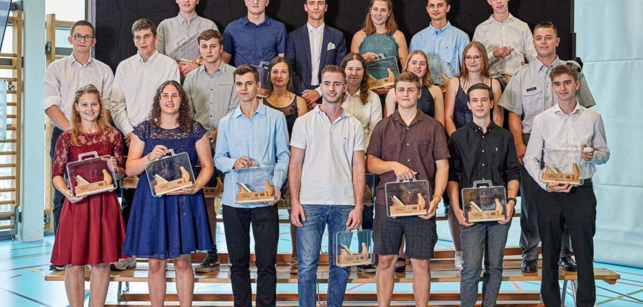 Zur Abschlussfeier gehört seit jeher auch die Übergabe der Hobel-Auszeichnungen für überdurchschnittliche Leistungen während der Lehre und an der LAP. Dieses Jahr erreichten 21 Schreiner/innen EFZ dieses hohe Ziel – so viele wie noch nie. Brancheninsider sind mit Rückblick auf die «Art in Wood» vom April nicht stark überrascht – «ein hervorragender Jahrgang». Ebenso wurden 12 Schreinerpraktiker/innen mit der Schlussnote 5,3 und höher mit der «Säge» ausgezeichnet. Eine Ehrenmeldung erreichten beachtliche 23 Absolvierende.