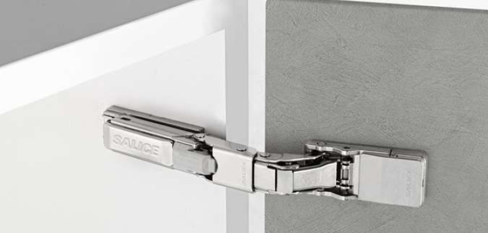 Bänder für dünne Fronten sind derzeit bei fast allen einschlägigen Herstellern ein wichtiges Thema. Ein besonders gefälliges Modell hat der italienische Beschlaghersteller Salice im Programm. Dank einer neuen Befestigung ist das Band für Fronten ab 8 mm Stärke erdacht. Damit lassen sich auch Keramik, HPL oder Verbundwerkstoffe verwenden. Für das sanfte, gebremste Schliessen sorgt ein integrierter Silikonöldämpfer. Auch die Ausstattung mit dem «Push to open»-Mechanismus für grifflose Fronten ist mit den Standard-Grundplatten möglich.