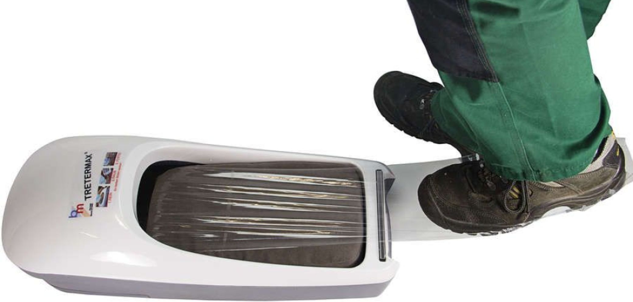 Egal ob schmutzige oder nasse Schuhe: Mit «Tretermax» von B & M bleiben Böden trotzdem sauber. Es handelt sich dabei um einen Spender mit einer integrierten Rolle aus Spezialklebefolie. Man tritt mit dem Schuh in die Folie, wobei sich diese wie ein Film an die Sohle legt.Das System ist passend für alle Schuh-grössen und Schuharten und kann auch mehrlagig verwendet werden. Es ist somit ideal für Baustellen, Handwerk, Industrie, Lebensmittelbetriebe, Labors sowie Ausstellungen. Nach Gebrauch wird die Folie einfach manuell abgezogen. Eine Rolle reicht für bis zu 250 Paar Schuhe.
