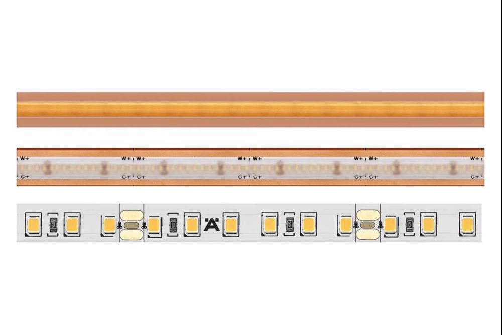 Seit der Einführung der ersten LED-Lampen im Jahr 2009 hat sich viel getan. Der CRI-Wert – der Referenzindex, der die Qualität der wiedergegebenen Farben von Objekten unter künstlichem Licht anzeigt – lag damals bei 80. Eine Lichtquelle mit einem CRI-Wert von 100 würde Farben genauso wie Tageslicht wiedergeben. «Mittlerweile ist man schon lange über einem CRI-Wert von 90, wenn man gutes Licht möchte», sagt Noletta. Das sei auch der Unterschied zu günstigen LED-Bändern. «Der Unterschied ist mess- und auch sichtbar.» Je tiefer der Wert liege, umso mehr Farbverfälschungen wie zum Beispiel Graustich können auftreten. «Hält man zwei Bänder mit unterschiedlichen CRI-Werten nebeneinander auf eine weisse Fläche, sieht man den Unterschied deutlich.»