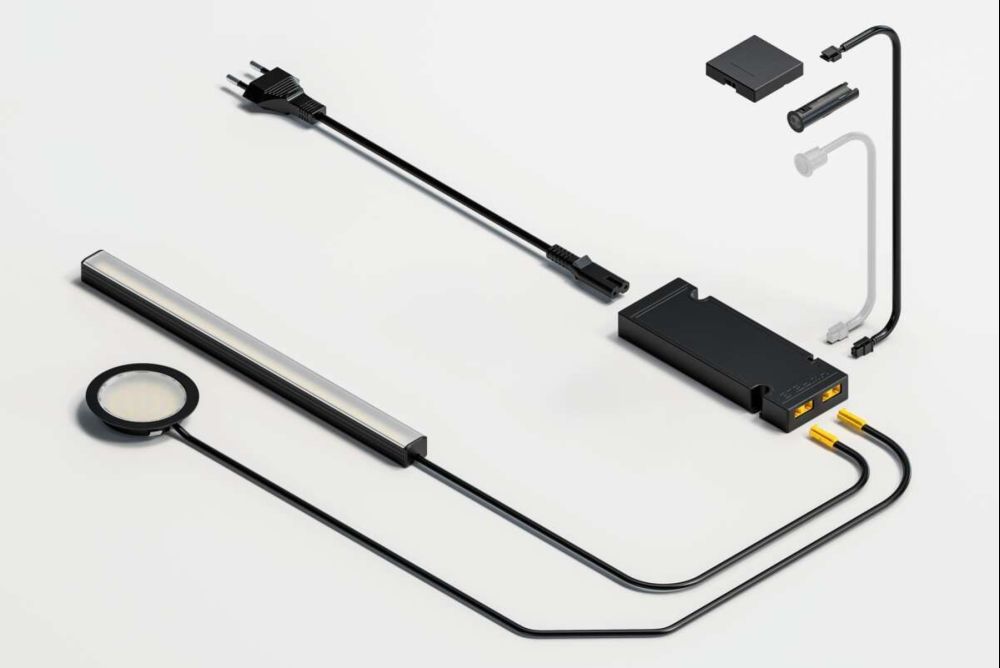 Sind die Ansprüche an die Beleuchtung klar, stellt sich die Frage, ob der Schreiner die einzelnen Komponenten wie LED-Band, Netzteil, Einspeisung und Schalter selbst zusammenstellt, oder mit einem Möbellicht-Konfigurator arbeitet. Er kann sinnvoll sein, wenn standardmässig immer die gleichen LED-Bänder und Profile eingesetzt werden, für eine Kommission aber Sonderprodukte gewünscht sind. Dann muss nämlich nur das tatsächlich benötigte Material bestellt werden, womit am Ende auch keine überschüssigen Teile anfallen.