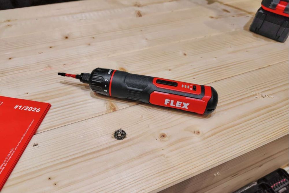 Besonders kompakt kommt der 4-V-Akku-Schraubendreher «SD 7-230 4» von Flex daher. Das Werkzeug ist 190 mm lang, 35 mm im Durchmesser und wiegt 307 g. Der «SD 7-230 4» verfügt über sieben Drehmomentstufen (maximal 5 Nm) und ein LED-Licht mit Nachleuchtfunktion. Aufgeladen wird der Akku-Schraubendreher über einen UBS-C-Ladeanschluss.