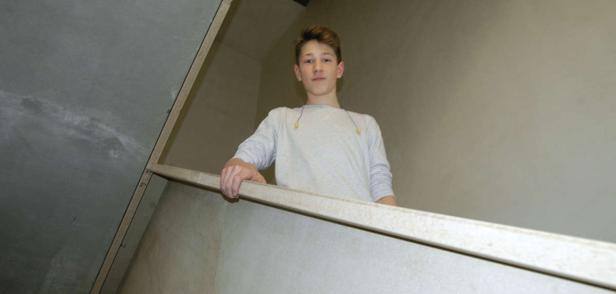 Merlin Pyrochta (18) hat bei der kniffligen Montage der schweren Treppengeländer mitgeholfen. Bild: Michael Suter