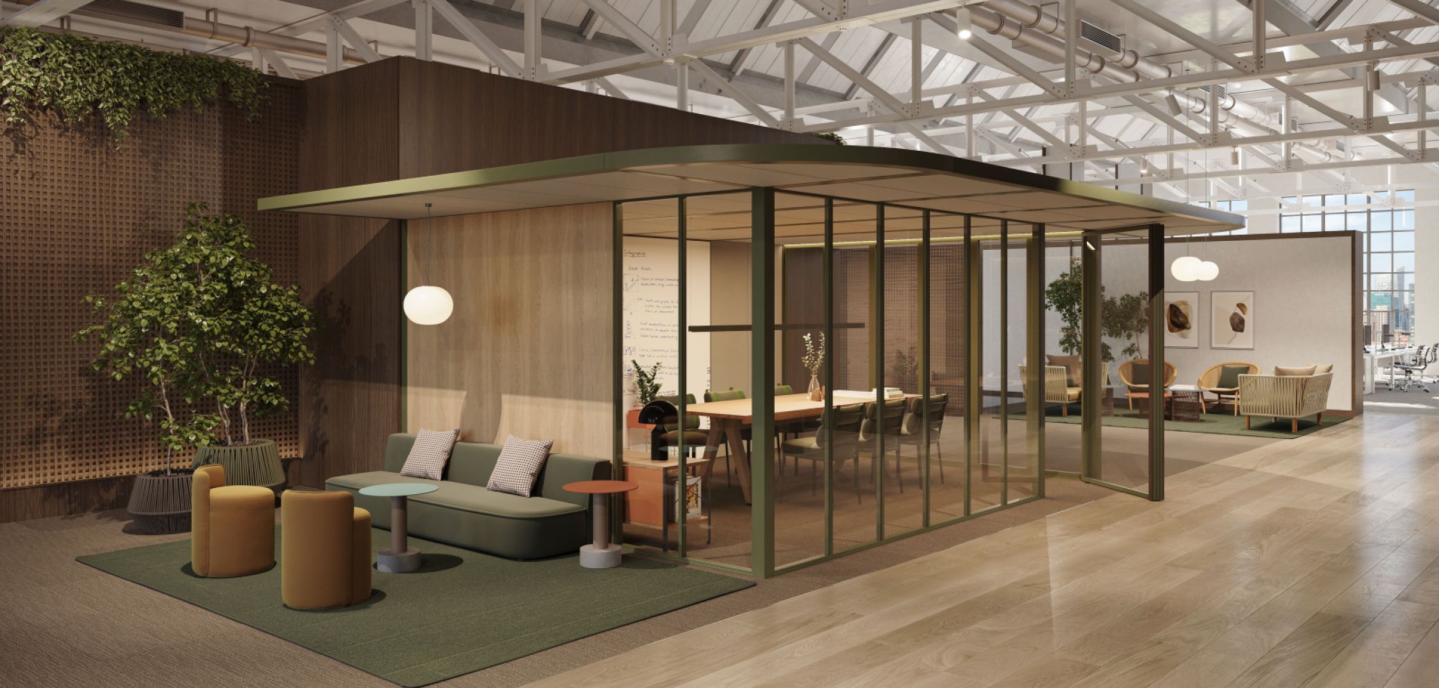 Innenausbau. Das Büro wandelt sich stark. Weg vom Einzelbüro und hin zu flexibel nutzbaren Bürowelten. Auch das spanische Möbellabel Kettal hat das erkannt und präsentiert eine modular nutzbare Pavillon-Struktur.