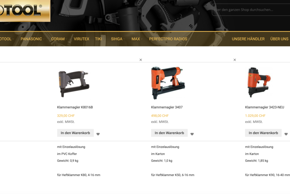 Der Webshop von Revotool ist übersichtlich aufgebaut. Screenshot: Nicole D'Orazio