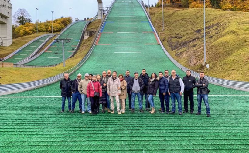 FAchgruppe Montage. Das etwas trübe Herbstwetter hat die Mitglieder der Fachgruppe nicht davon abgehalten, sich bei den Sprungschanzen in Einsiedeln zu einer spannenden Besichtigung zu treffen.