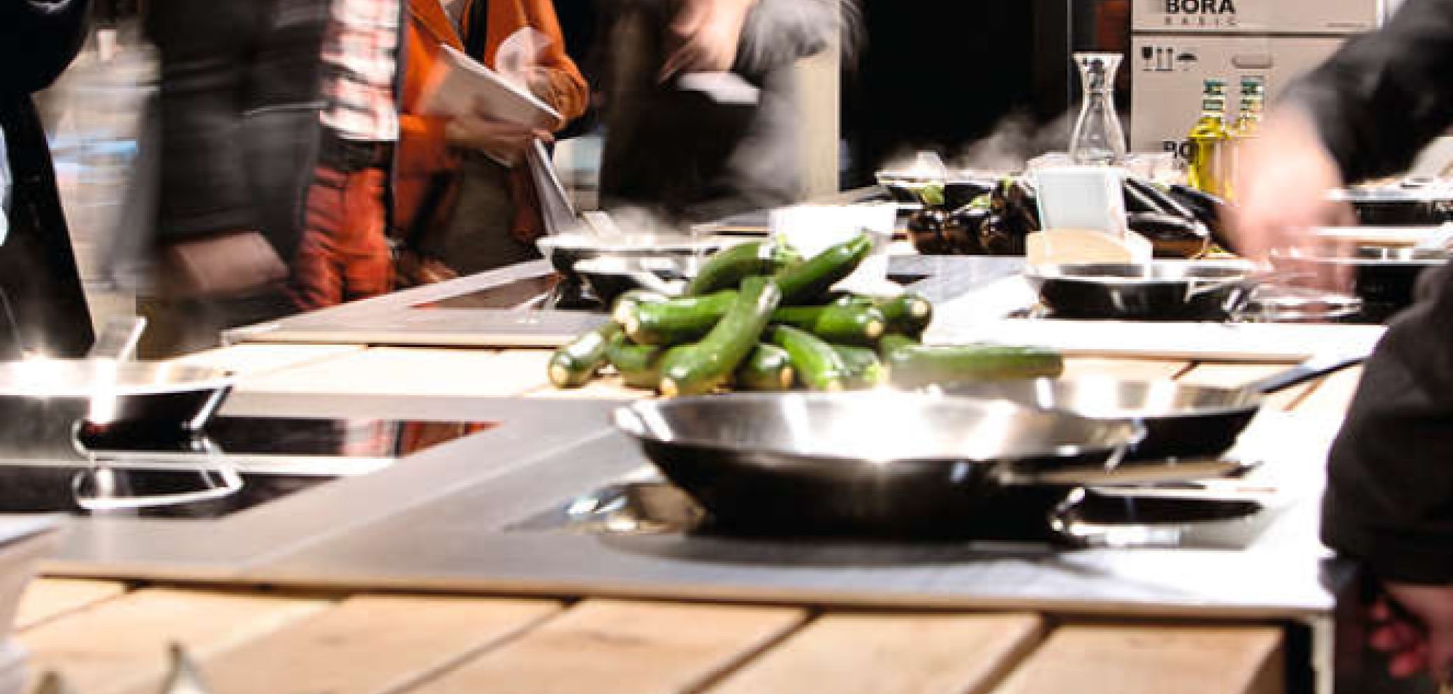 Una cucina moderna ha piani di cottura interattivi con cappe integrate (che aspirano i vapori e gli odori di cottura direttamente dal loro punto di origine), forni a induzione per nuove esperienze di gusto declinate a un ridotto consumo energetico, frigoriferi che soddisfano ogni esigenza di refrigerazione domestica, lavastoviglie a funzione «vapore» per preservare stoviglie delicate ... Elettrodomestici connessi in rete che si comandano facilmente con App che trasformano smartphone e tablet in centraline; App studiate per monitorare i tempi di cottura e la lista della spesa, per verificare le diverse cotture, per trovare la ricetta più adatta in base alle provviste presenti nel frigo oppure agli ingredienti di stagione. Una cucina intelligente è oggi anche social: elementi interattivi sul fondale della cucina (e in futuro anche sul piano di cottura) permettono di tenere sotto controllo il piatto che si sta preparando, di connettersi ai network, di chattare e altro ancora.