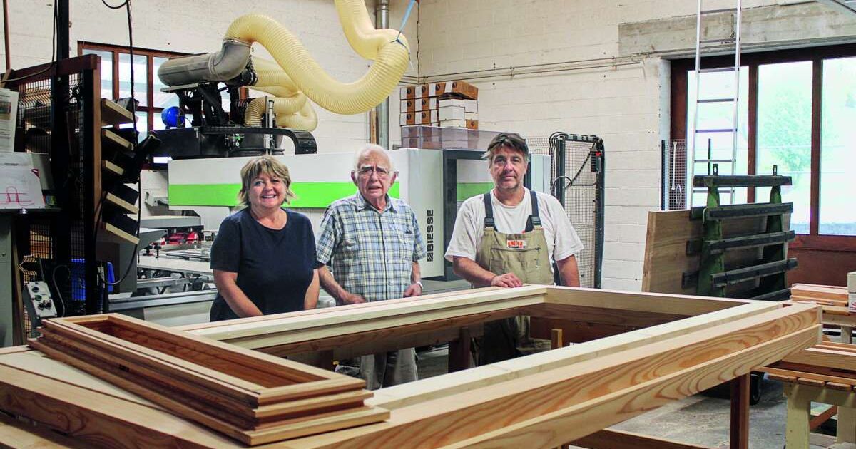 Giorgio Oliva al centro con i figli Michela e Matteo che oggi gestiscono la falegnameria di famiglia a Motto. Immagine: Vania Castelli