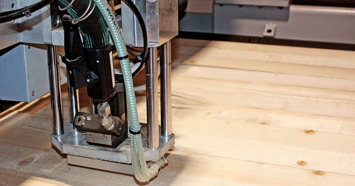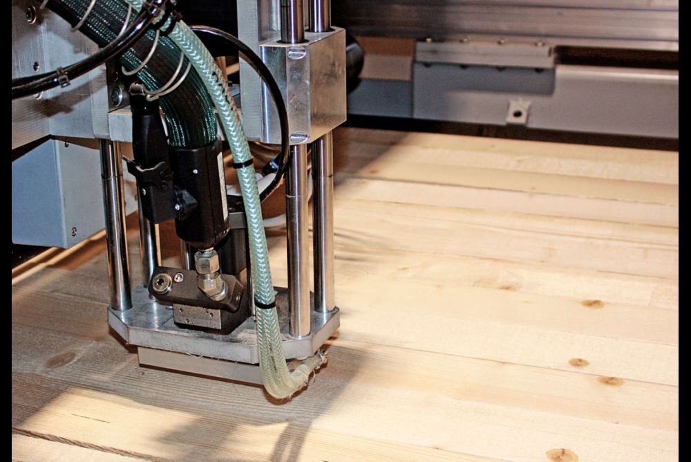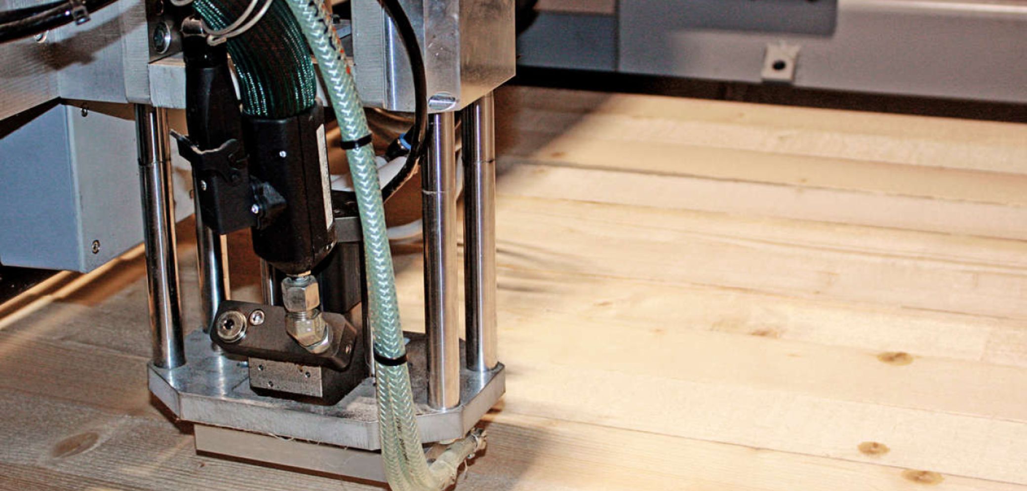 Bisher wurden Täfer erst nach dem Hobeln sortiert und Ausfalläste von Hand fixiert. Die «Astkosmetik-Anlage» von Eisenring setzt bereits bei der Rohware an. Lose Äste können dadurch nicht mehr herausfallen. Astrisse, welche die Optik stören, werden kaum erkennbar. Und der Nachbearbeitungsaufwand sowie der Ausschuss sind erheblich reduziert. Herz- stück der Maschine ist ein neu entwickelter Oberflächenscanner. Dieser erfasst die Breite, Länge und Tiefe der losen Äste sowie Astrisse auf den Zehntelmillimeter genau. Die Daten werden an einen Rechner weitergeleitet, der aus der Anzahl und der Lage der Fehler die optimalen Arbeitsbewegungen für die Ausbesserungseinheit berechnet und diese steuert.