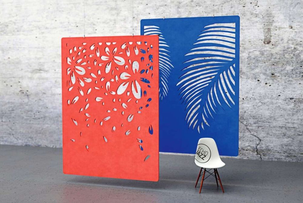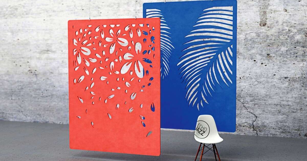 Die neuen «Echocurtain»-Raumtrenner beruhigen den Büroalltag im Grossraumbüro in doppelter Hinsicht und bieten in den Materialstärken 12 und 24 mm eine flexible und transparente Lösung. Die von der Natur inspirierten Perforationen «Flowers» und «Palm» strahlen optisch Ruhe aus, während laut Hersteller die Absorber die Akustik merklich dämpfen. Der «Echocurtain» aus Recycling-PET hängt scheinbar schwebend im Raum und wird mittels fertiger Montagekits geliefert. Die Kollektion umfasst 18 Standard-Muster und reicht von expressiven bis zu sehr abstrakten Formen. Es ist auch möglich, die Raumtrenner mit kundenspezifischen Kreationen zu gestalten.