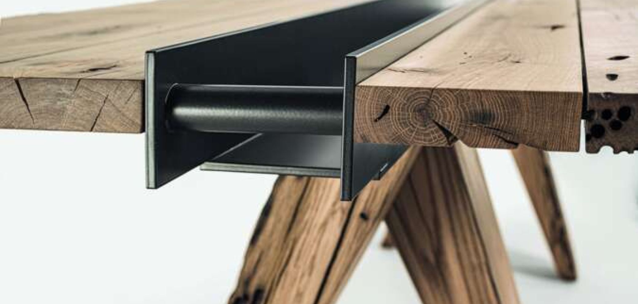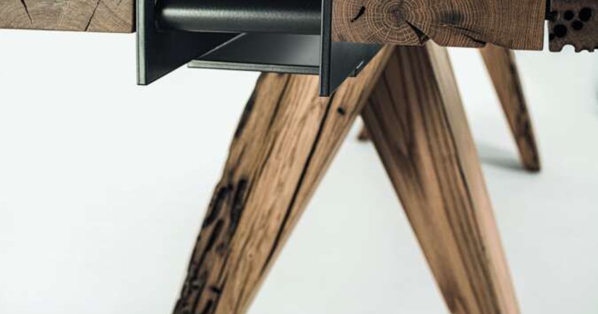 Stahlteile können einem Möbel ein besonderes, oft rustikales Aussehen geben. Die Oberfläche kann einfach geölt werden. Bild: Riva 1920