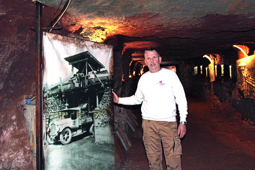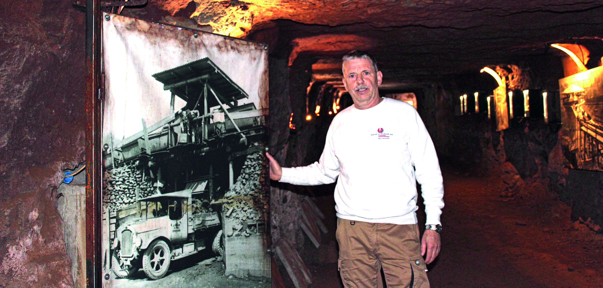 Schreinermeister David Kläusler (61) im Stollen des Industriedenkmals Bergwerk Herznach. Bild: Cornelia Thürlemann