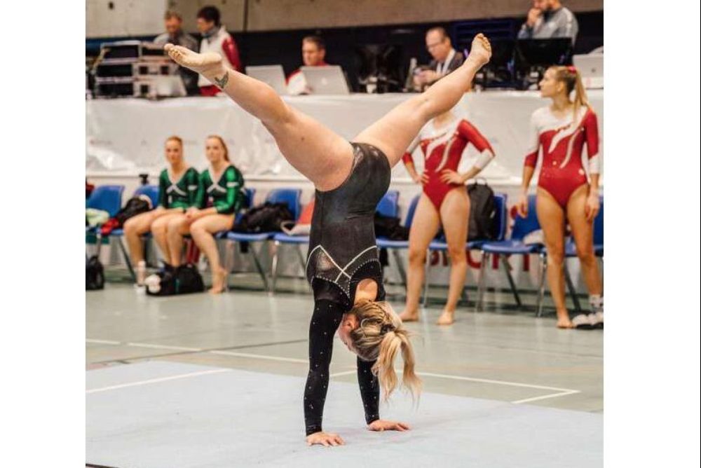 Alina Betschart (23) bei ihrer Bodenübung an der Schweizermeisterschaft im Geräteturnen 2022. Bild:PD