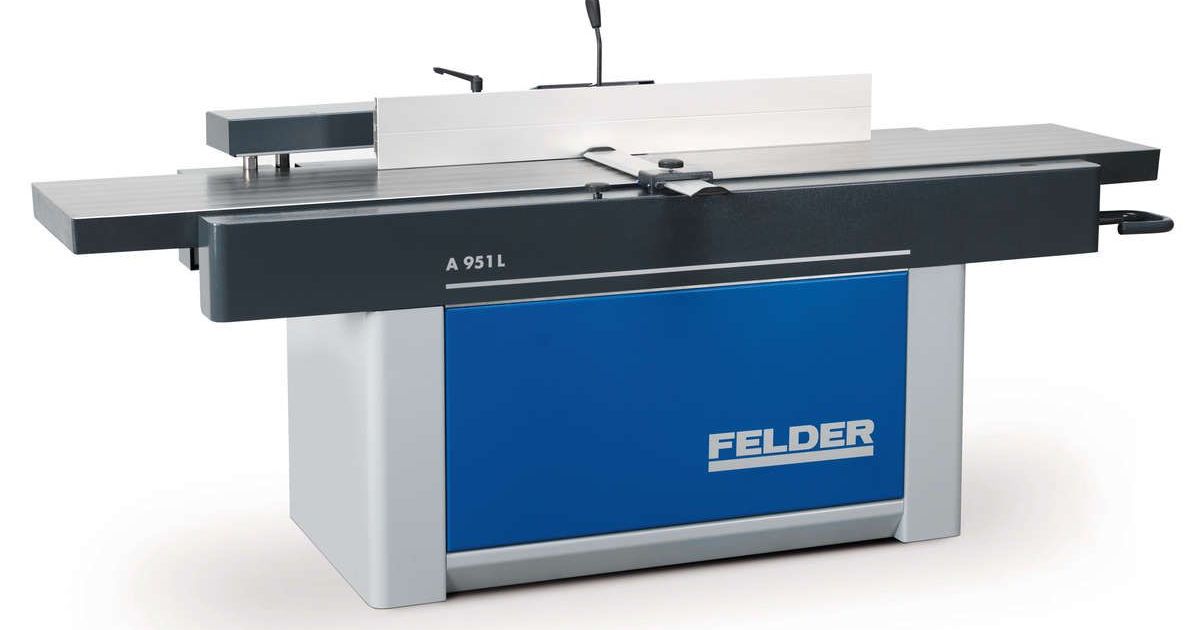 Die Abrichthobelmaschine «A 951L» von Felder beeindruckt mit Detaillösungen und einem Abrichttisch, der laut Hersteller in seiner Klasse konkurrenzlos ist. Der 2700 mm lange Maschinentisch mit 510 mm Hobelbreite erfüllt grossformatige Holzbearbeitungsansprüche. Durch den platzsparend konstruierten Fügeanschlag ist die Aufstellung der Maschine direkt an der Werkstattwand möglich.Das Fügeanschlaglineal ist von 90 bis 45 Grad stufenlos schwenkbar und bleibt dabei immer auf Tischniveau.Das Abrichttisch-Verstellsystem mit präziser Spanabnahme-Schnelleinstellung und leicht ablesbarer Skala sorgt für gute Abrichtqualität. Der Felder-Abrichtschutz ist platzsparend in den Maschinenständer integriert und lässt sich für maximale Bewegungsfreiheit an zwei Stellen abklappen. Wie alle neuen Felder-Hobelmaschinen kann auch diese mit der «Silent-Power»-Spiralmesser-Hobelwelle ausgestattet werden. Diese reduziert die Lärmbelastung bei Hobelarbeiten um mehr als die Hälfte, bietet eine bis zu 20-fach höhere Schneidenstandzeit gegenüber konventionellen HSS-Schneiden und sorgt mit einem durchgehenden, ziehenden Schnitt für ausrissfreie Hobelbilder in jeder Holzart. Zusätzlich wurden auch die Absaugergebnisse durch optimierte Spanräume verbessert.