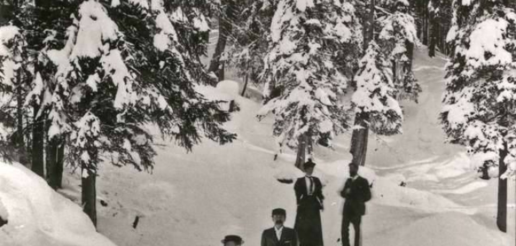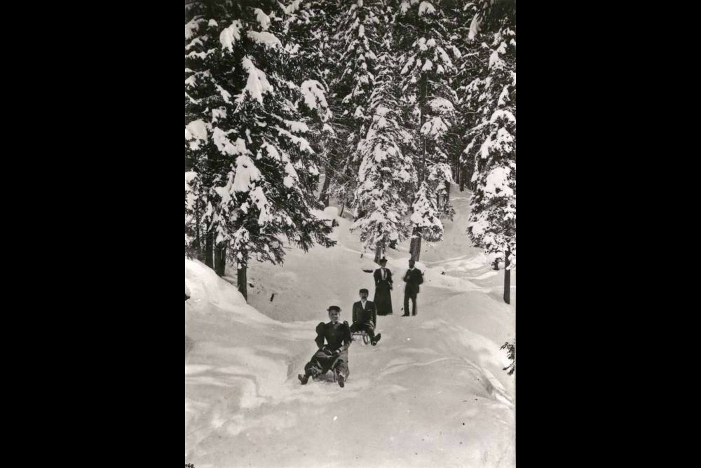 Schlittenfahrten von Davos nach Klosters um 1890: Sie gaben dem Schlitten seinen Namen. Bild: Dokumentationsbibliothek Davos
