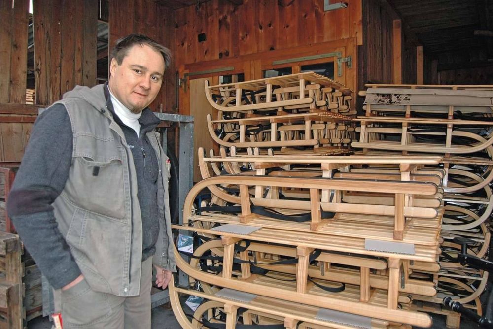 Nicht aus Davos, sondern aus Tschechien kommen die Davoser Schlitten von der Landi für 49.50 Franken. Auf Anfrage teilt die Landi Schweiz AG in Dotzigen mit: «Der Produzent liefert gute Qualität zu einem guten Preis. Deshalb sahen wir uns bisher nicht dazu veranlasst, diesen zu wechseln.» In den Schlitten von Dreier steckt trotz moderner Technik und Maschinen viel Handarbeit. «Ein Kantholz oder Brett auf ein Förderband legen und hinten kommt ein fertiger Schlitten heraus, eine solche Maschine gibt es bei uns nicht», sagt Erwin Dreier. Eigenschaften wie eine leichte und sichere Lenkbarkeit, ein guter Lauf sowie Stabilität erfordern Know-how, beste Rohstoffe und Einfallsreichtum. Dreier verwendet nur harte und strapazierfähige Esche. 239 Franken kostet ein Schlitten aus Sulgen.