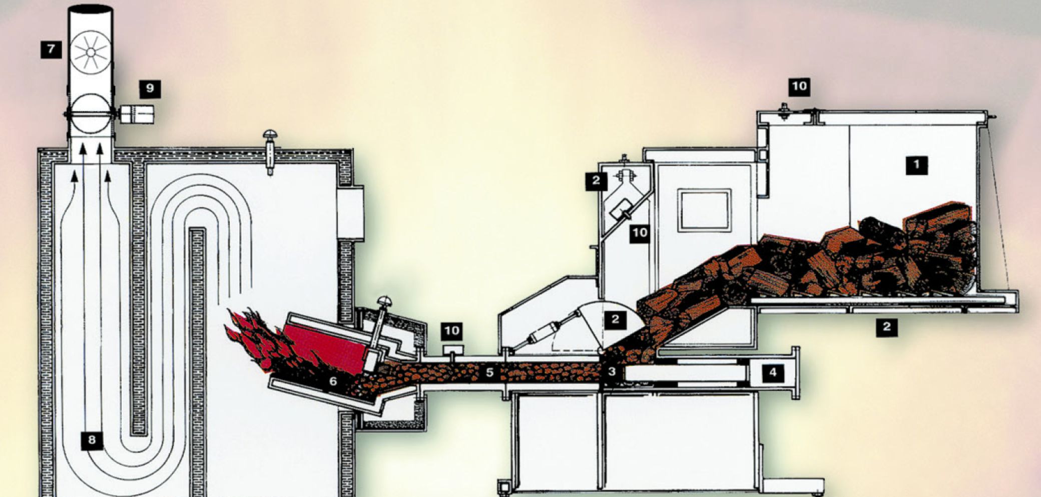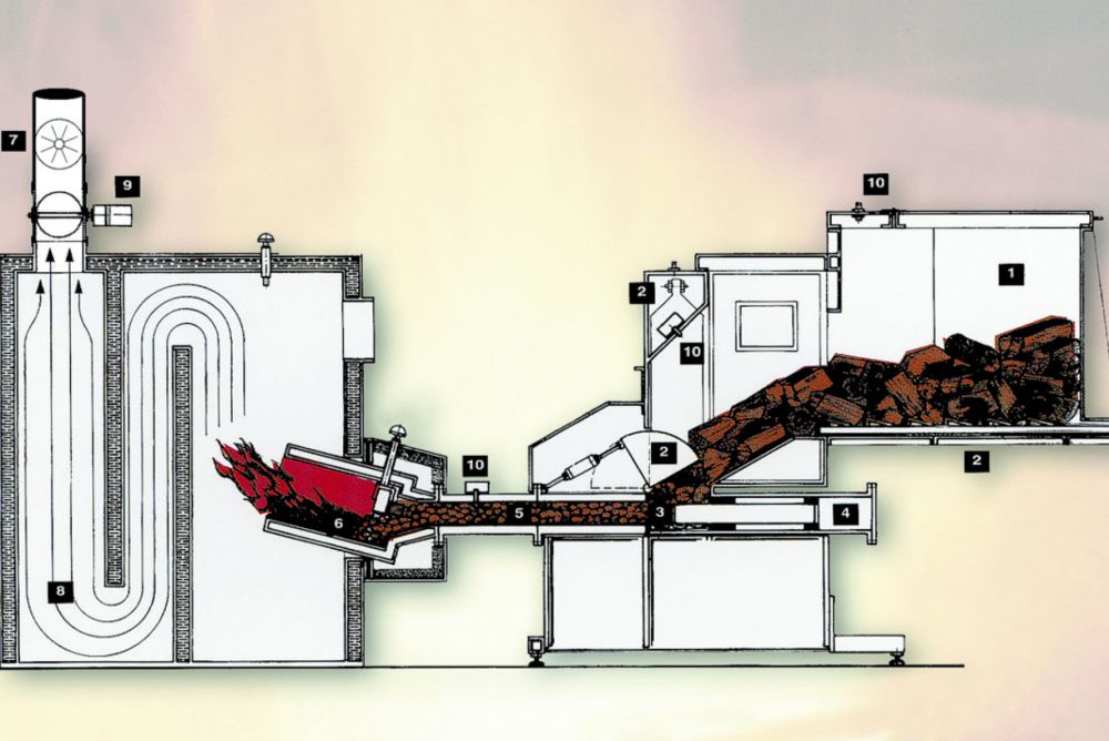 Für alle Arten von Restholz geeignet dagegen ist die Heizungsanlage nach dem System Hobag. Denn die Anlage verfügt über einen integrierten hydraulischen Zerkleinerer, der das Stückgut in der Grösse harmonisiert. Das Unternehmen aus Brienz hat diese Technik bereits in den 1970er-Jahren entwickelt und geniesst bis heute eine Alleinstellung damit. Der separate Brennstoffbehälter (siehe Punkt 1, Abbildung links) kann dabei zu einem beliebigen Zeitpunkt mit Restholz beschickt werden. Mittels eines Schubbodens (2) wird das Brenngut vor die Stanzmatrize (3) transportiert. «Der hydraulische Stanzzylinder (4) presst das Holz durch die gehärtete Matrize durch das Beschickungsrohr (5) in den Tunnelbrenner (6)», erklärt Claudia Klauwers von Hobag das System. «Dabei ist es egal, welche Form das Restholz hat. Es soll nicht länger als 30 cm und eine Kantenlänge nicht grösser als 15 cm sein», so Klauwers. Auch Sägemehl kann zugegeben werden, allerdings höchstens 20%. Hackgut, Späne, Briketts oder Pellets werden vom Ofen genauso aufgenommen. Die Luftzufuhr für die optimale Verbrennung wird über einen Ventilator (7) und die Nebenluftklappe (9) des Heizkessels (8) geregelt. Der bei allen automatisch beschickten Anlagen grundsätzlich bestehenden Gefahr eines Rückbrandes bei versagender Brennstoffförderung wird bei Hobag mittels einer Löscheinrichtung (10) im Bereich des Brenners begegnet. Bei einem Stromausfall springt die Anlage ein und verhindert so einen möglichen Rückbrand. Nachteil einer solchen Anlage ist neben dem Platzbedarf auch der höhere Preis für Anlagen zwischen 25 und 110 kW Wärmeleistung.