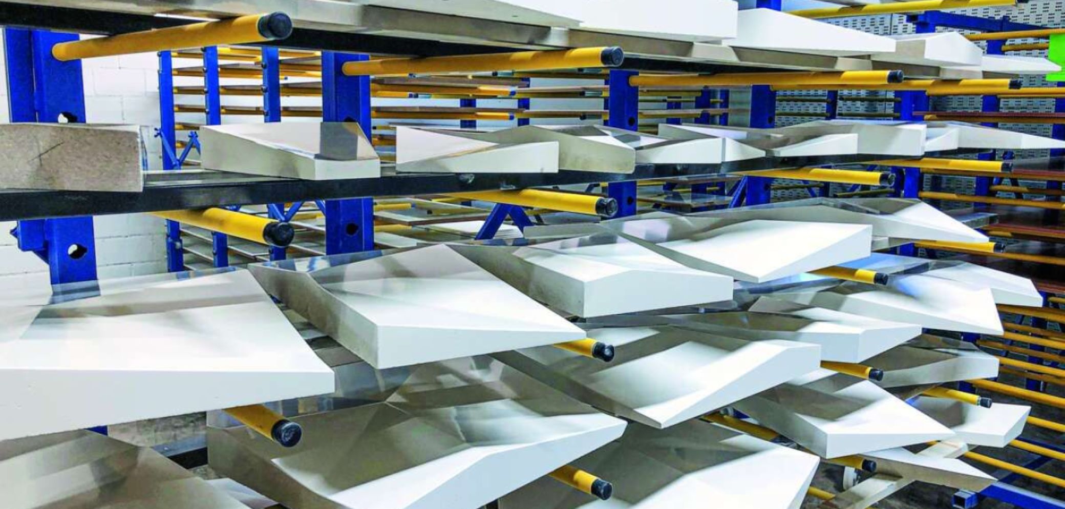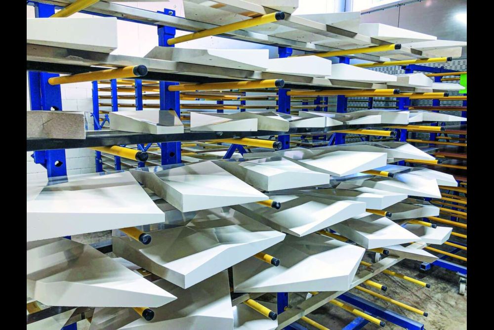 Die Einzelteile der Gletscherdecke sind nach dem Lackieren am Aushärten. Bild: Obrist interior AG