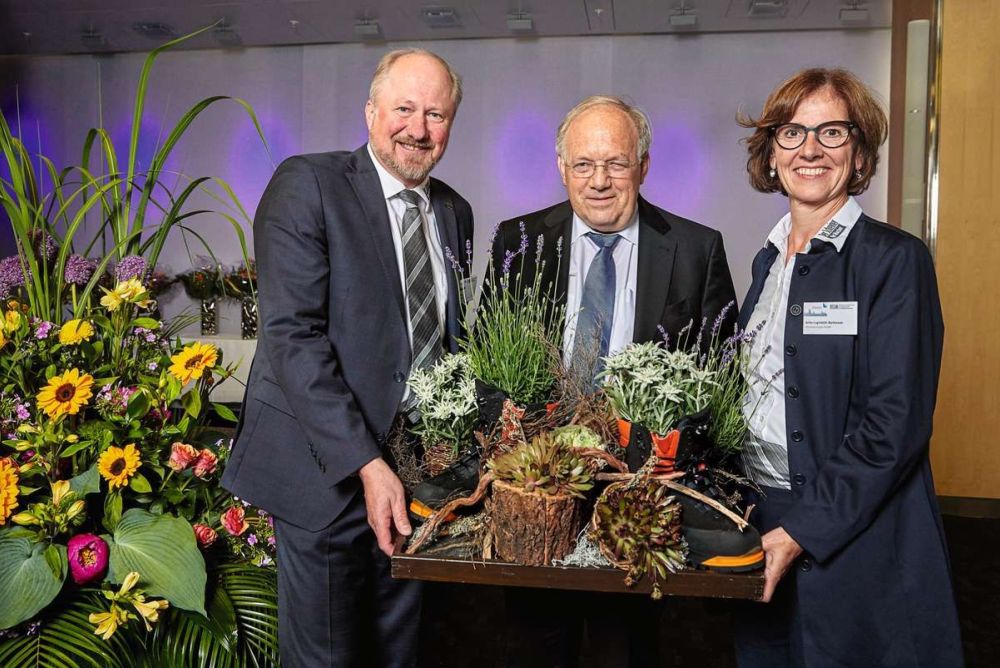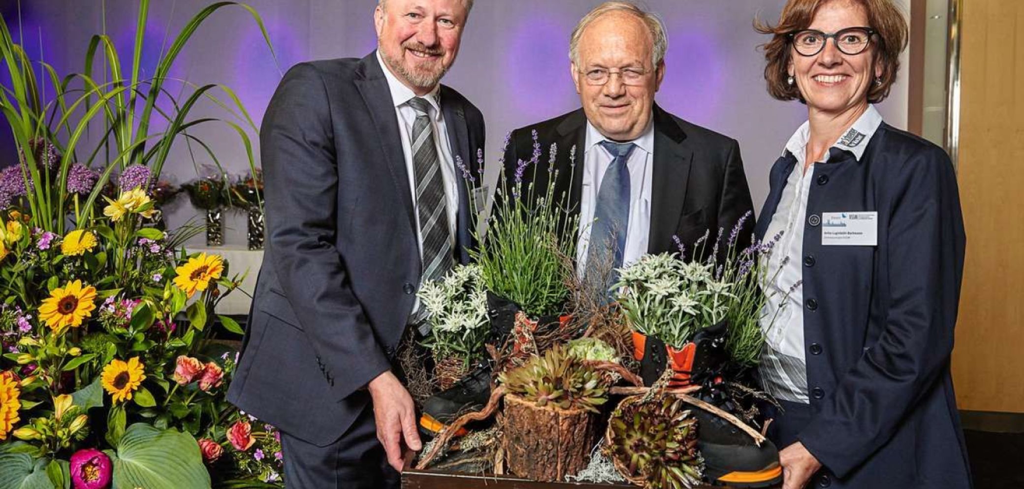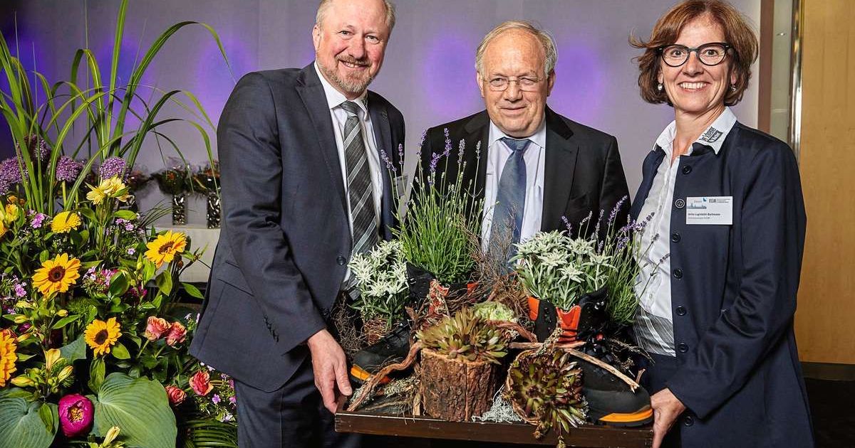 Der ehemalige Wirtschaftsminister Johann Schneider-Ammann war nicht zufällig an der VSSM-Delegiertenversammlung vom letzten Freitag zu Gast. In seiner Abschlussrede als Bundesrat hatte er das Rednerpult nicht gerade als sein Lieblingsmöbel bezeichnet. Das rief die VSSM-Verantwortlichen auf den Plan. «Schneider-Ammann soll sein Lieblingsmöbel bekommen», wurde VSSM-Zentralpräsident Thomas Iten zitiert, «aber ein Möbel vom Schreiner aus Massivholz!» An der Delegiertenversammlung des VSSM in Zürich Oerlikon wurde nun das Geheimnis gelüftet. Eine praktische Sitzgelegenheit zum Schuheausziehen wünscht sich Schneider-Ammann und bekommt symbolisch ein Paar Wanderschuhe mit Blumenschmuck.
