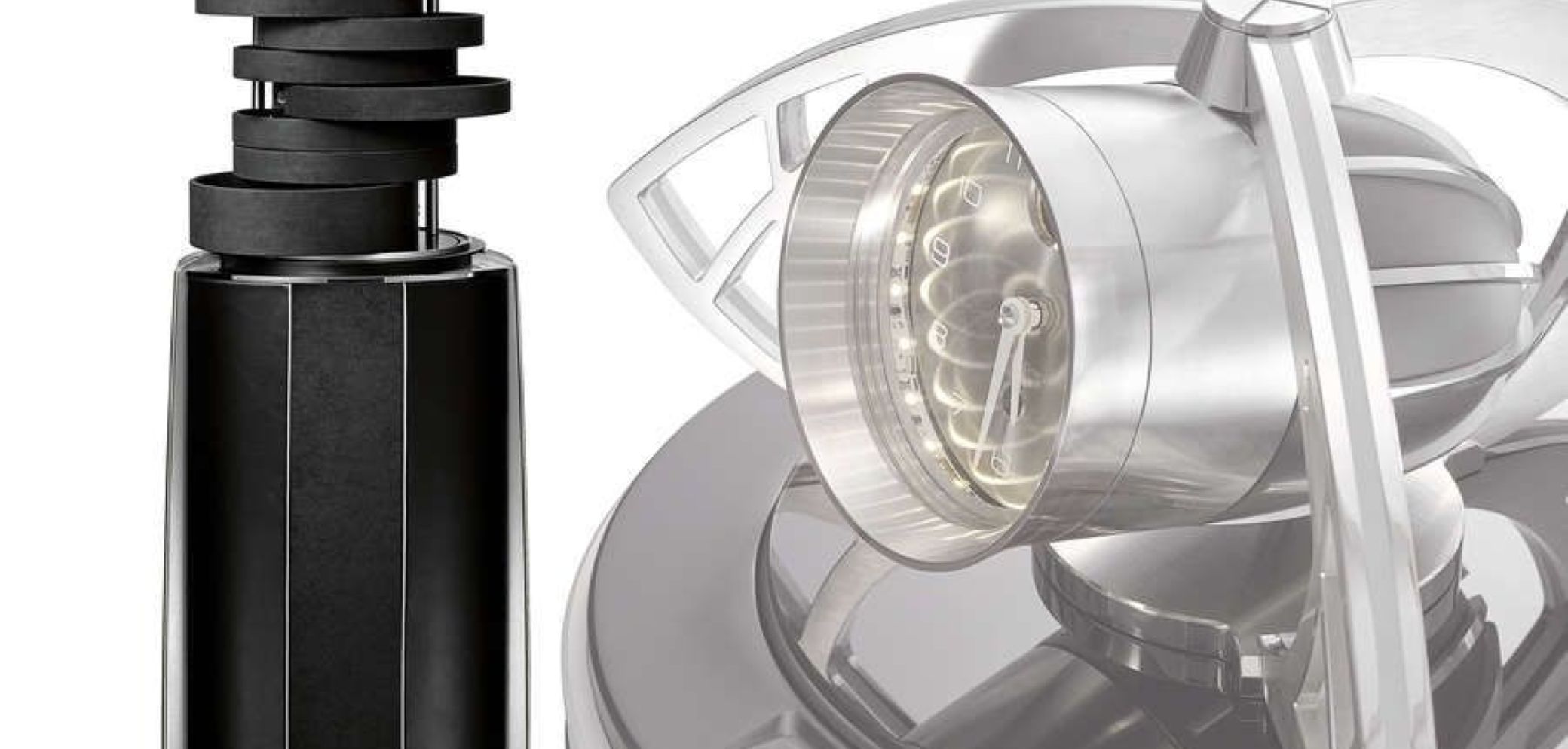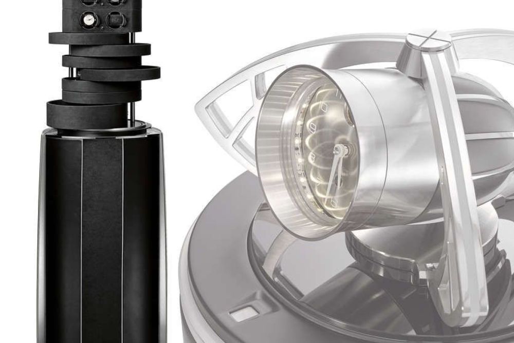 Uhren, Schmuck, Accessoires, aber auch Dokumente oder Bargeld: Oft möchte man etwas sicher verwahren, ohne sich deshalb eigens zum Safe zu bemühen. Der «Illusion» von Buben & Zörweg bringt die Sicherheitslösung als Tischmodell ins Büro, in den Ankleideraum oder ins Schlafzimmer (Bild rechts). Mittels Fingerprint oder wahlweise Transponder wird der Safe entriegelt und gleitet mit seinem Inhalt sanft nach oben. 40 kg Gewicht zeugen vom soliden Edelstahlkorpus, der zusätzlich an seinem Standort befestigt werden kann. Der «Grande Illusion» (Bild links) steht als repräsentative Säule eher neben dem Tisch, optional gekrönt von einem «Fine Timepiece» mit «Buben & Zörweg Signatur Uhrwerk». Die Säule bietet bis zu 12 «Time Movern» oder 5 Schubladen Platz.