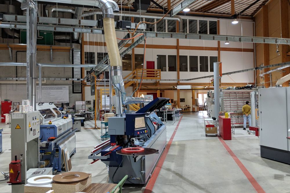 Am Montag lag der Fokus auf der Absaugtechnik, dem Hacken und Brikettieren, am Dienstag ging es um das Schleifen der perfekten Oberfläche und heute Mittwoch konzentrierte man sich auf das horizontale sowie vertikale Zuschneiden. Der Donnerstag steht dann im Zeichen der Kantenanleimmaschinen, am Freitag konzentriert man sich auf die 5-Achs CNC-Technologie.