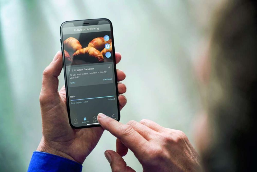 Der Studioline-Backofen mit Bräunungssensor passt den Bräunungsgrad von Gerichten wie Brot, Pizza und Auflauf an die Vorlieben seiner Nutzer an. Mittels einer Skala von 1 bis 5 sagen diese dem Ofen einfach vor dem Start, wie hell oder dunkel das Gericht werden soll. Dieser kombiniert nun die Informationen der integrierten Backofenkamera mit intelligenten Algorithmen und stimmt das Ergebnis auf die Wünsche ab. Sobald der gewünschte Bräunungsgrad erreicht ist, schaltet der Backofen ab und sendet eine Push-Nachricht via Home-Connect-App auf das Smartphone oder Tablet.