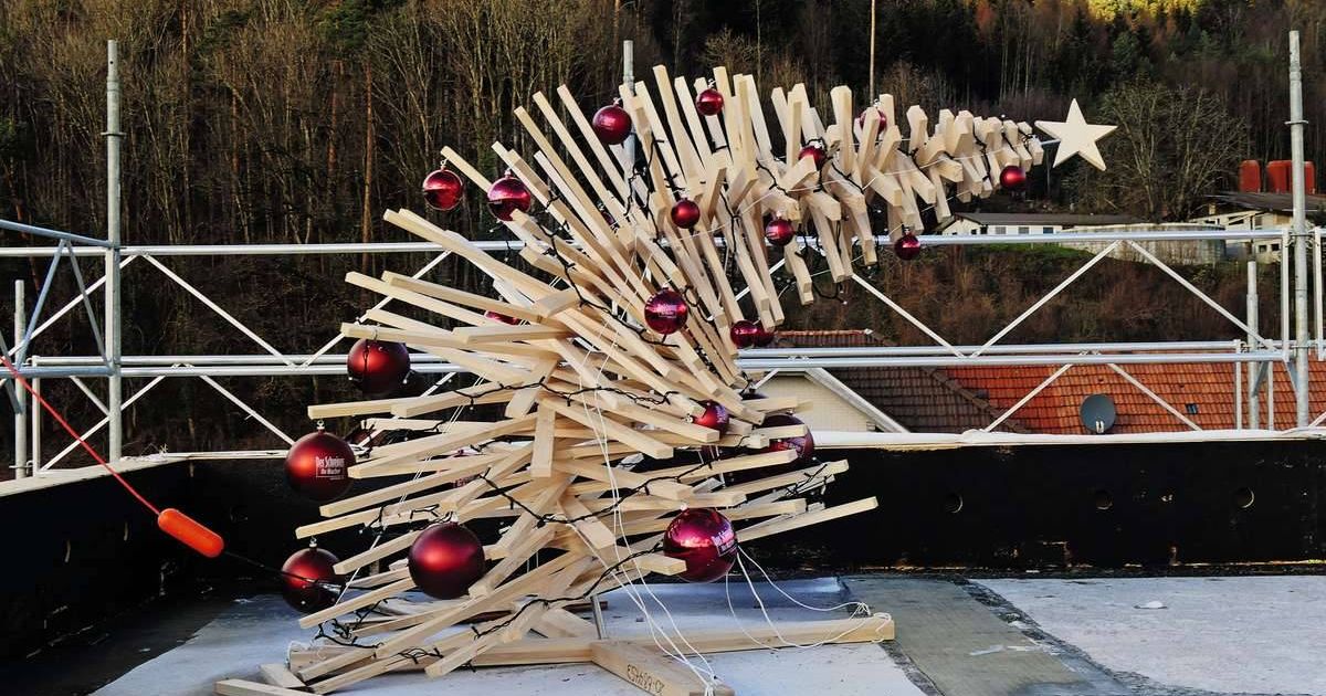 Schreiner-Weihnachtsbaum. Die Beteiligung an der Weihnachtsaktion des VSSM im Dezember war überwältigend. Rund 400 geschreinerte Weihnachtsbäume schmückten landauf, landab die Betriebsgebäude von Schreinereien. Eine kleine Auswahl der kunstvoll arrangierten Bäume.