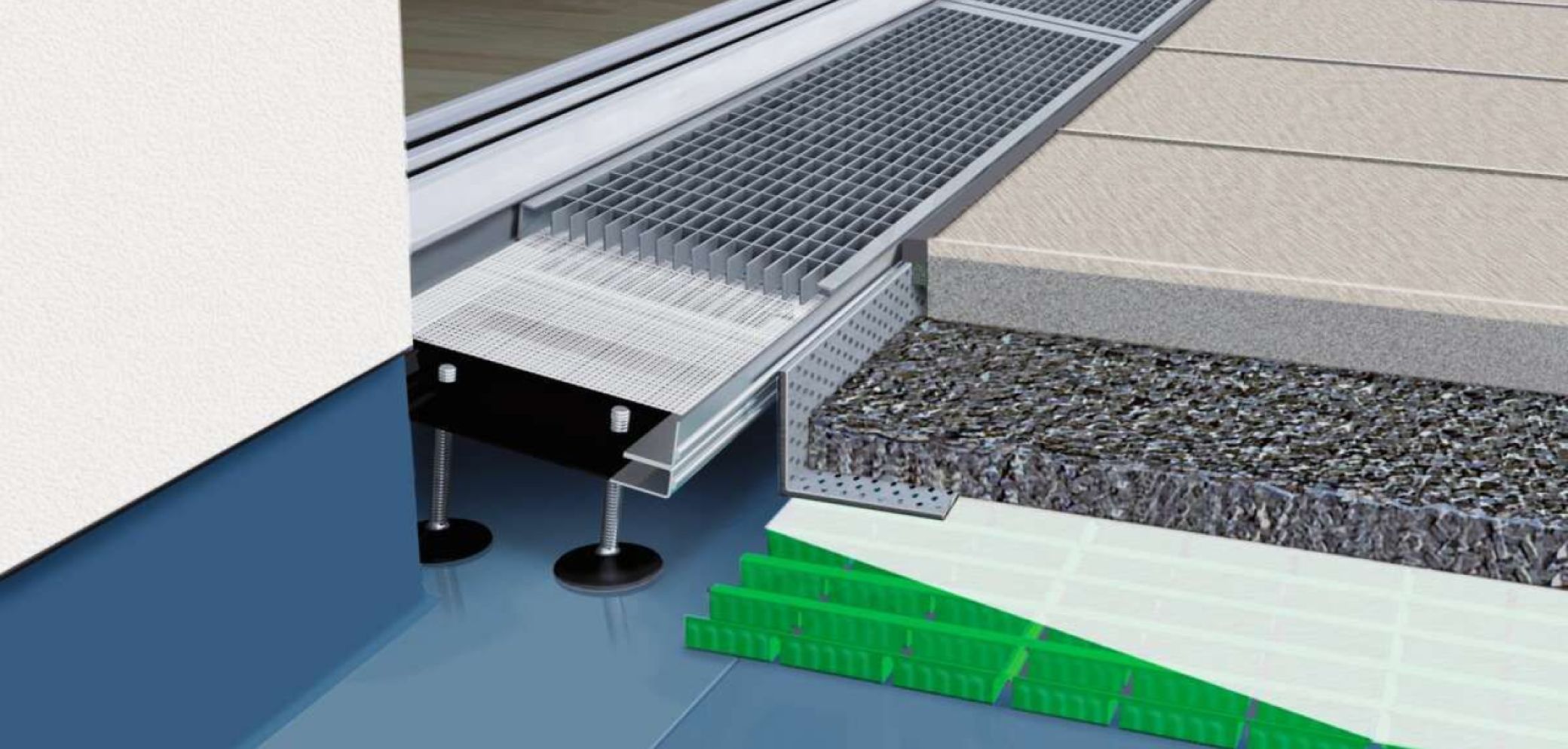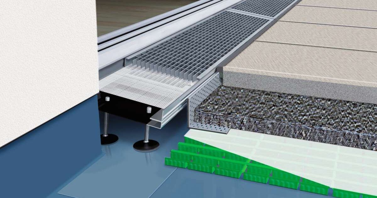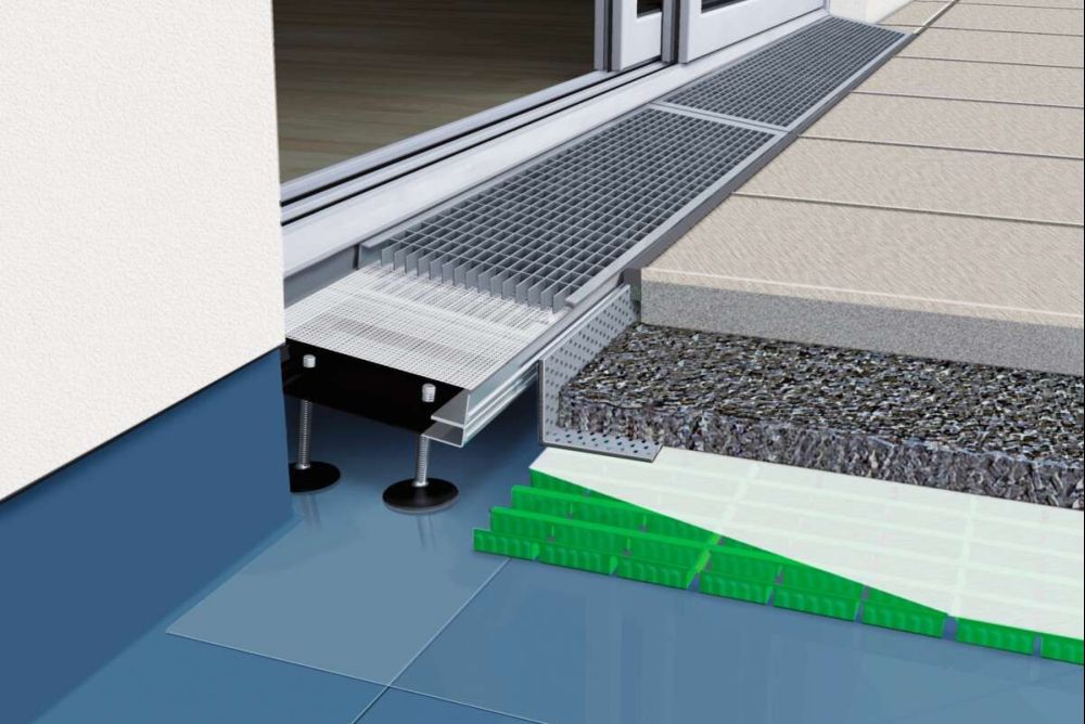 Barrierefreie Übergänge auf Balkon oder Terrasse sind heute im Neubau längst Standard. Doch bei Bestandesbauten sieht es ganz anders aus: Dort sorgen hohe Türschwellen oft für gefährliche Stolperkanten – ein Relikt alter Normen. Solche Schwellen sind nicht nur unpraktisch, sie nehmen vielen Menschen im Alltag ein Stück Lebensqualität. Eine praktische und sichere Lösung ist das Komplettsystem von Gutjahr mit dem Spezialdrainrost «AquaDrain BF-Flex» inklusive passender Flächendrainage. Anders als Kastenrinnen ist er nach unten offen und sorgt so für die rückstaufreie Entwässerung im Türanschlussbereich, wie es die wichtigen Normen vorsehen. Der Clou: Der Rost lässt sich schräg – also als Rampe – vor bodentiefen Türen oder Fenstern einbauen. Dadurch wird sichergestellt, dass die Oberkante der Abdichtung über dem Belagsniveau liegt. Das Wasser wird dann schnell in die angeschlossene Flächendrainage geleitet – und damit vom Übergang weg.