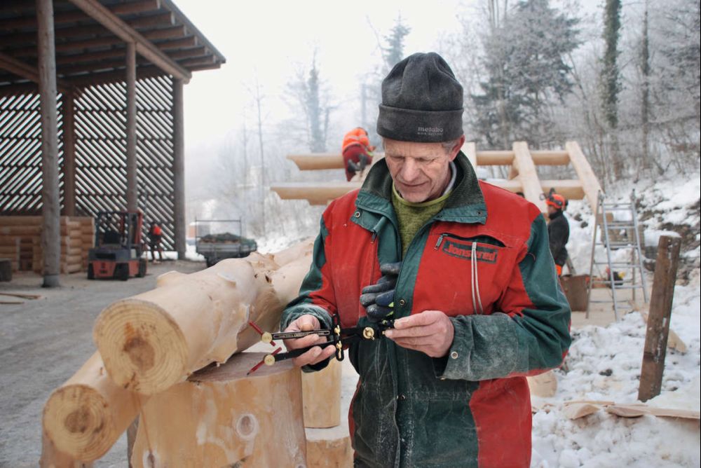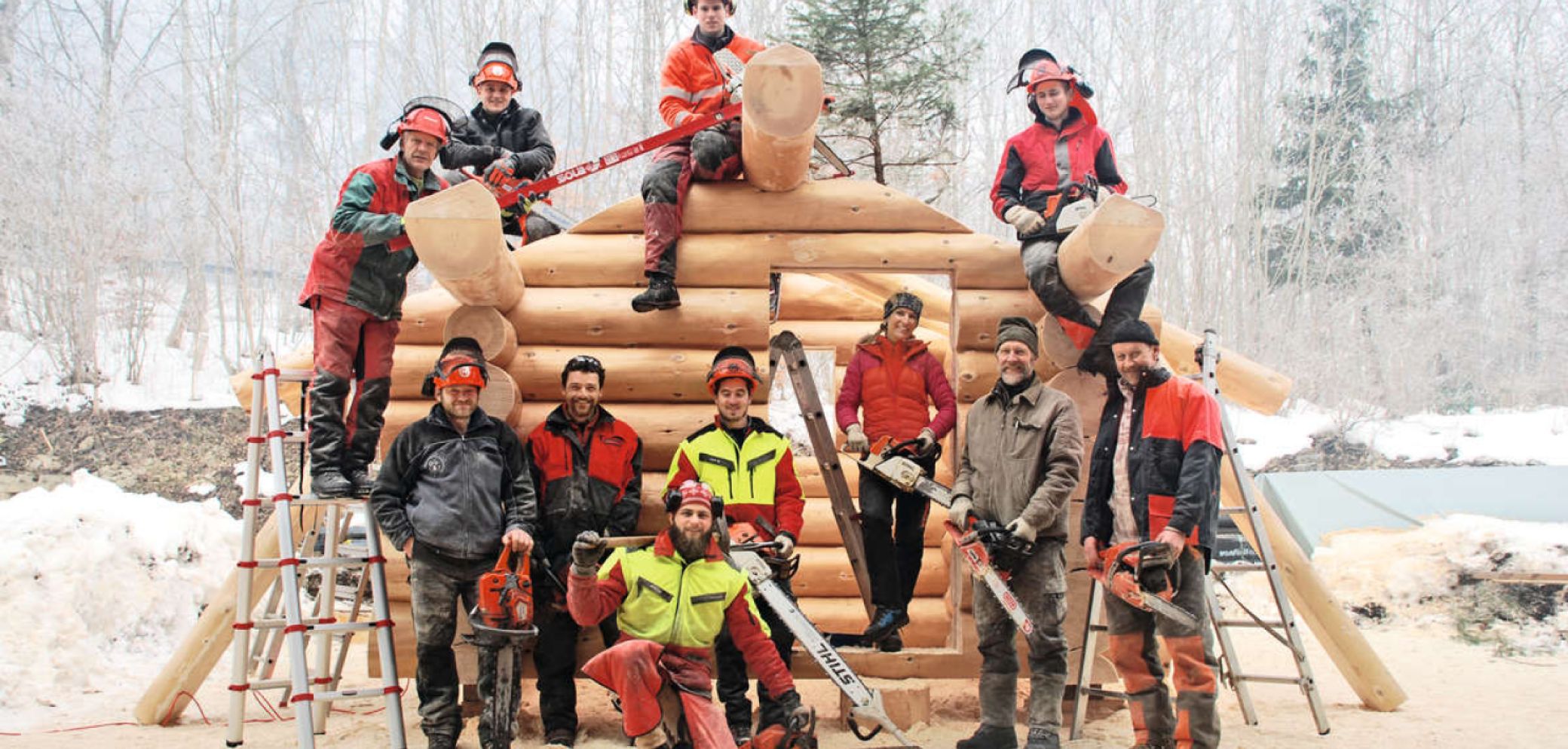 Die elf Teilnehmenden des Blockbaukurses im solothurnischen Hägendorf haben bewiesen, dass sie zäh sind. Viel Wind und Temperaturen im Minusbereich – solche Bedingungen mögen nicht alle bei der Arbeit unter freiem Himmel. Aber diesen elf waren die Strapazen nach zwei Wochen nicht anzusehen – abgesehen davon, dass ein Teilnehmer am letzten Tag von der Grippe heimgesucht wurde. Sie sägten, schleppten Stämme und stapelten sie auf. Und wenn es dann doch etwas zu viel wurde mit dem Frost und der Bise, wärmten sie die klammen Finger bei der Feuerstelle auf.
