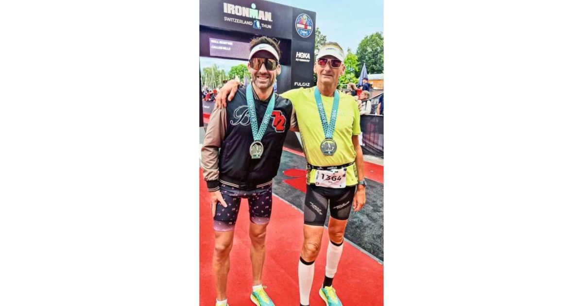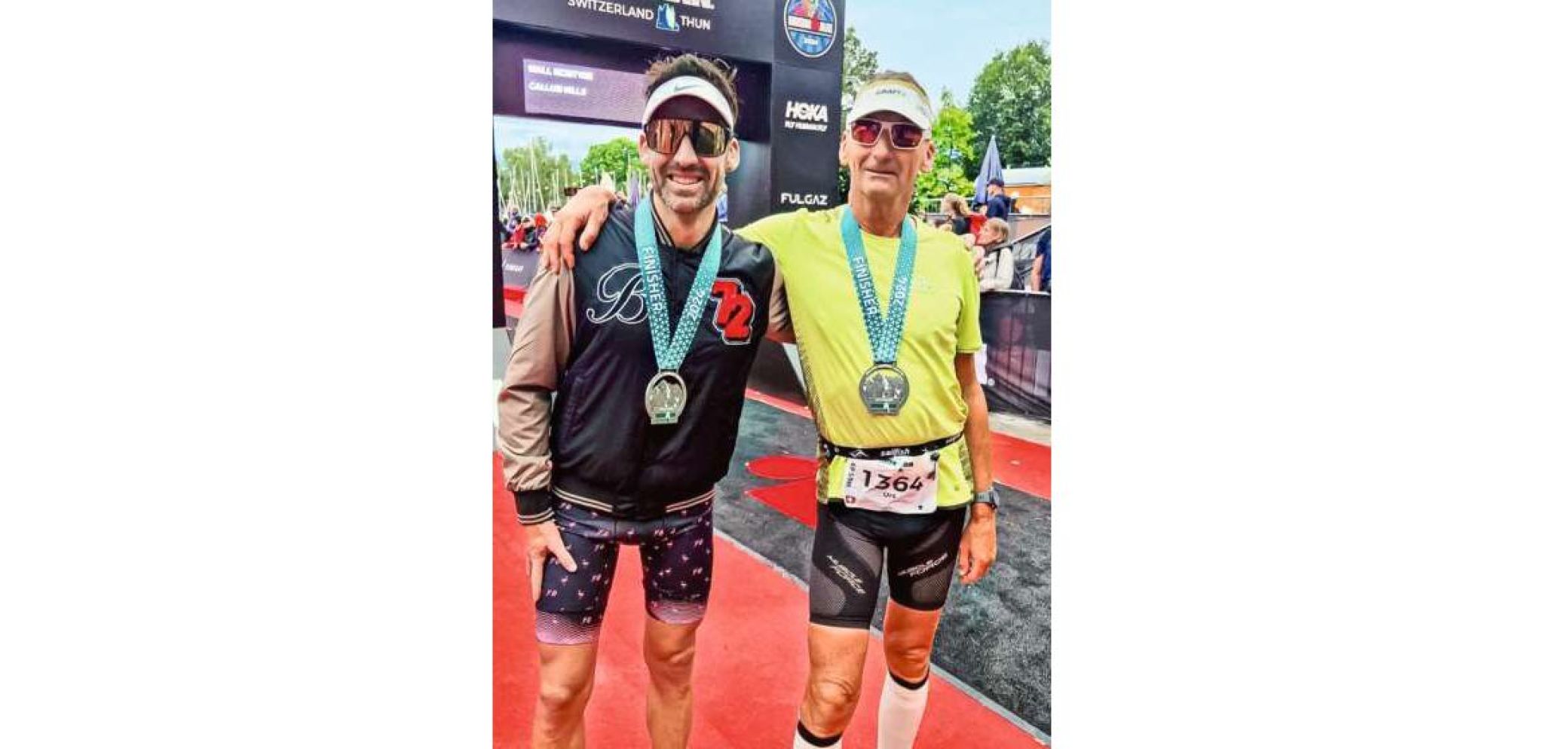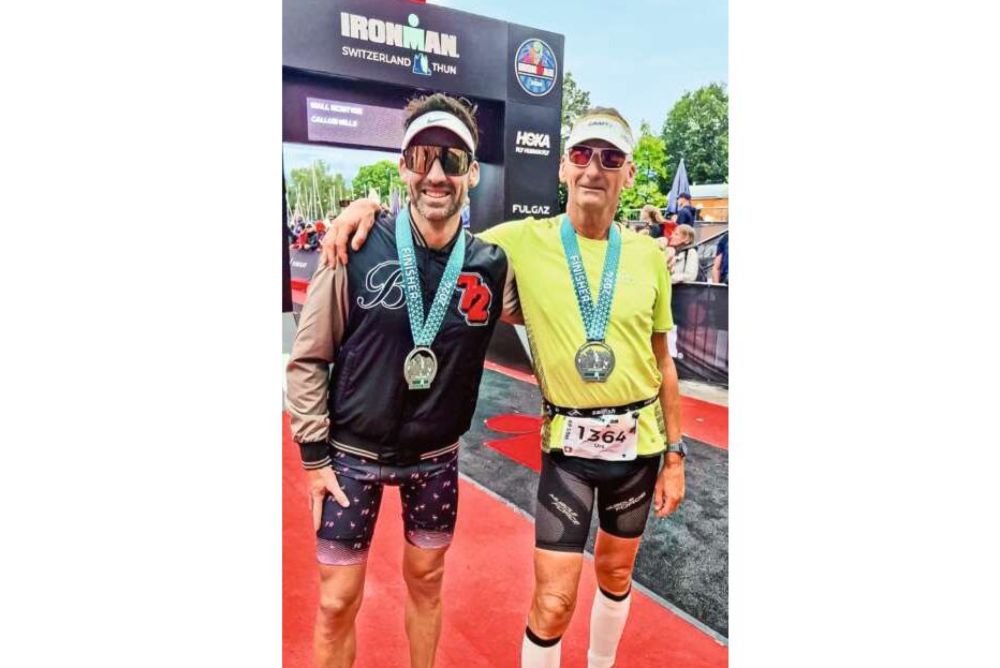 Kürzlich nahm Schreinermeister Urs Fischer mit Sohn Emanuel (l.) am «Ironman Switzerland» in Thun teil. Bild: PD