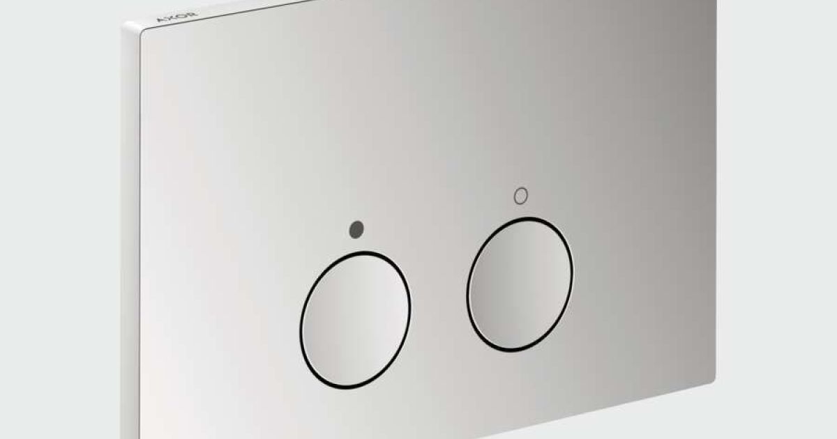 Der «Flushplate» von Axor vervollständigt das Bad und macht dabei den feinen Unter- schied bei der Bedienung von WC-Spülungen aus. Er hat ein monolithisches «Softsquare»-Design, das nur 12 mm von der Wand absteht. In der Mitte des Metallgehäuses befinden sich zwei runde Tasten, die bei der Betätigung vollständig in der Rosette verschwinden. Die gelaserten Grafiken zeigen das Spülvolumen an. Ein dezentes Axor-Logo ziert die obere Aussenkante der Platte. Konzipiert für die flache Wandmontage ist er mit dem «Sigma»-Unterputzspülkasten von Geberit kompatibel.