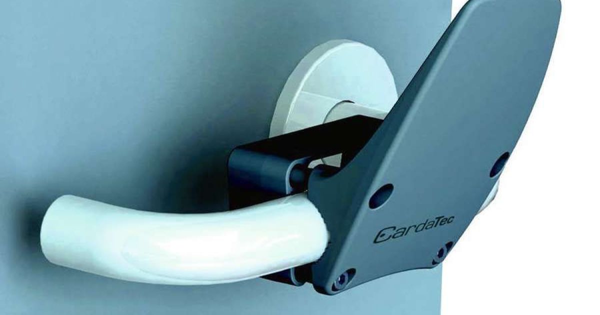Die Carda Tec AG hat mit H1 einen Hygiene- Griffadapter im Angebot, der sich an praktisch jeden Türdrücker anklemmen und wieder rückstandsfrei entfernen lässt. Damit kann man die Türen mit dem Unterarm oder Ellbogen öffnen und schliessen. Es ist keine Berührung mit den Händen erforderlich, wodurch die Drücker nicht verunreinigt werden und ein allfälliges Infektionsrisiko reduziert werden kann. Die Schalen bestehen aus grauem Polyamid, sind teilweise glasfaserverstärkt und einfach zu reinigen. Ein Bedienhinweis liegt als Aufkleber bei, der ohne Rückstände ablösbar ist.