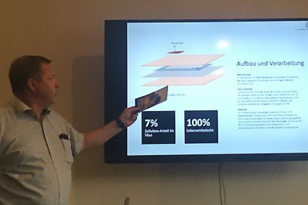 Nach der Heisspresse hat das Holz die Standarddicke einer Kreditkarte von 0,76 mm und ist durch die Aktivierung der Holzinhaltsstoffe schon recht glatt und stabil. Nach der Cellulosebeschichtung wird gedruckt. Ausgedacht hat sich das Ganze die Firma «Sustainable Cards» aus Schweden. Produziert wird in der Schweiz, weil es hohe Ansprüche an die Qualität gibt. Die beteiligten Unternehmen sind von der Zukunft der hölzigen Karte überzeugt. Denn: «Rund 37 Milliarden Karten werden weltweit pro Jahr aus PVC erzeugt», sagt Peo Akesson, Gründer und CEO der Firma. Das entspricht etwa 185 000 Tonnen des nicht wiederverwertbaren Plastiks aus Erdöl.