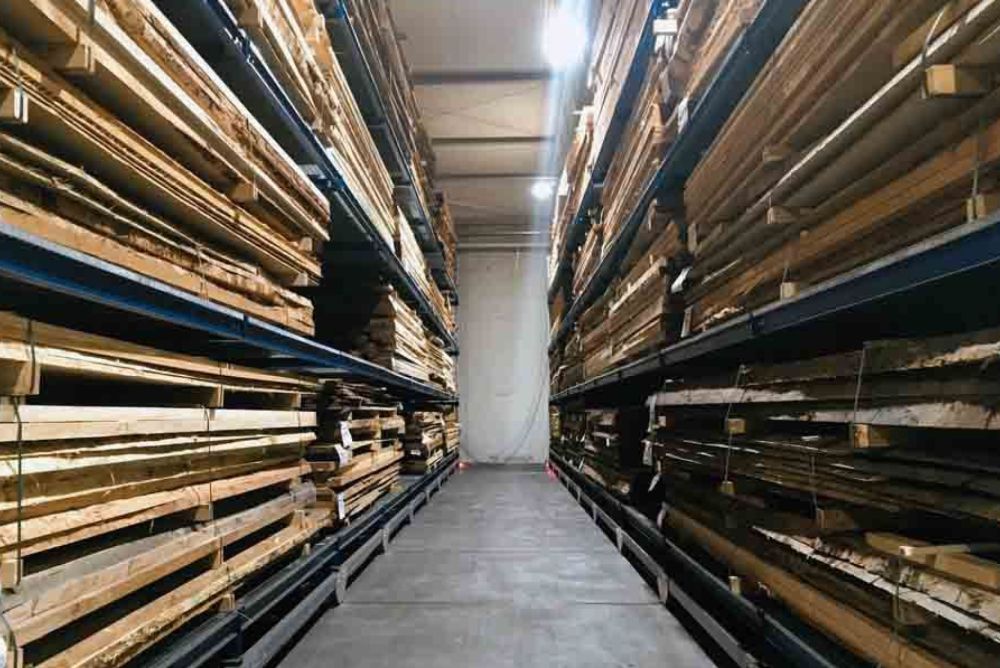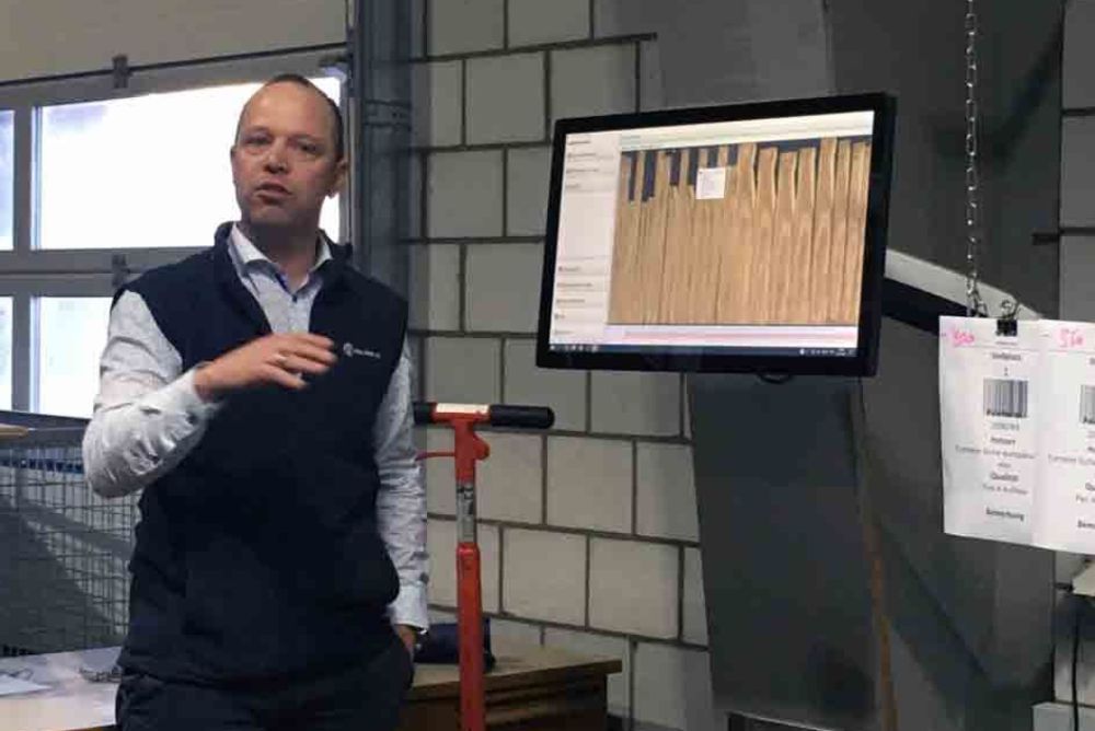 Jede Menge Holz bekam die Journalistenschaft anschliessend bei der Atlas Holz AG zu sehen. Besonders dabei: die Lagerung des Furniersortimentes mit über einer Million Quadratmetern und mehr als 70 verschiedenen Massivhölzern – alles akkurat in den fahrbaren Hochregalen der Lagerhallen am Standort in Trübbach SG einsortiert. «Das ist schon eindrücklich, wie sauber und professionell das Unternehmen mit so viel Material umgeht», zeigte sich IFN-Vorstandsvorsitzender Axel Groh beeindruckt. Auch die Ausstellung hat es in sich. Rund 400 m2 gross, zeigt Atlas Holz dort die Anwendung der Hölzer auch am Boden sowie Räume, die mit Altholz gestaltet sind.