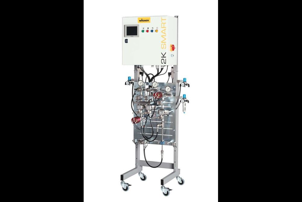 Die «2K Smart» von Wagner ist eine elektronisch gesteuerte Misch- und Dosieranlage für Lacke. Für die dafür notwendige Durchflussmessung kommen je nach Material Hubsensor, Zahnradmesszelle oder Massedurchflussmesser (Coriolis) in Frage, um eine hohe Beschichtungsqualität zu erreichen. Bei Mischanlagen mit automatischer Härtersteuerung bietet der Markt vor allem Zahnradmesszellen oder Coriolis an. Doch besonders bei hochviskosen Materialien mit hohem Festkörperanteil ist dies laut Wagner nicht ideal. Der Materialkontakt während der Durchflussmessung sorgt für einen höheren Verschleiss. Zudem muss das Messsystem immer mitgereinigt werden.
