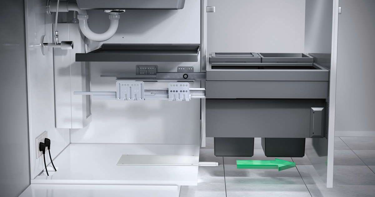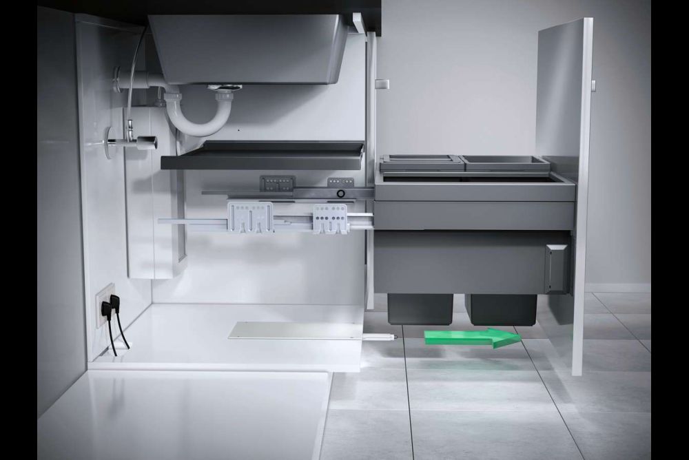 Mit dem automatischen Öffnungssystem «Libero 2.0» hat Hailo ein System im Programm, mit dem sich Schranktüren in Küche, Bad oder in Hauswirtschaftsräumen komfortabel öffnen lassen. Ein Sensor im Sockelbereich, der mit dem Fuss betätigt wird, löst den Mechanismus aus. «Libero 2.0» ist für alle Abfalltrennsysteme mit Frontanbindung sowie alle Auszugssysteme geeignet. Durch eine integrierte LED-Leuchte ist der Auslöser leicht auffindbar. Das System kann in bestehenden Schränken im vorderen Bereich des Schrankbodens nachgerüstet werden und verfügt über eine Steuerung, die dank Rutschkupplung Hindernisse erkennt. «Libero 2.0» ist nach IP 41 spritzwassergeschützt und für Netzspannungen unterschiedlicher Länder ausgelegt.