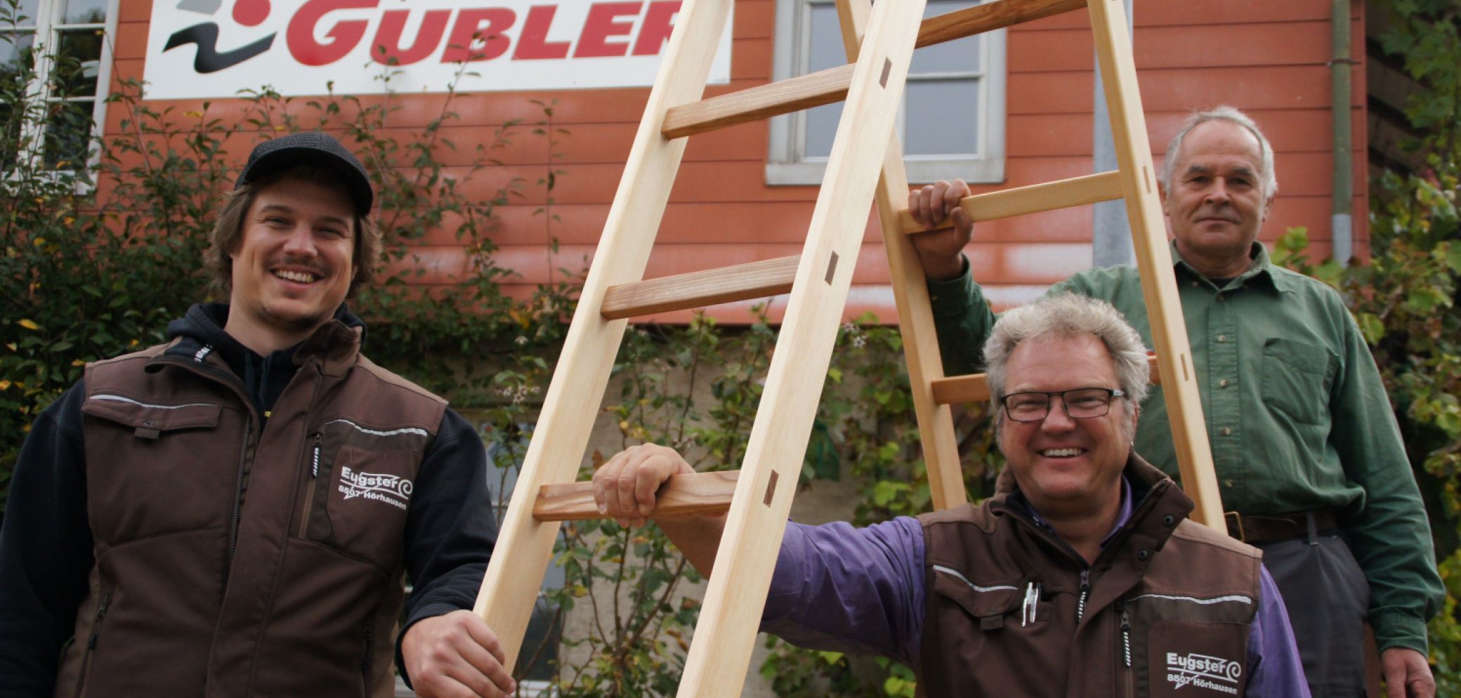 Heini Gubler suchte nach einer Nachfolgeregelung für seinen Familienbetrieb und fand sie in der Eugster Schreinerei Hörhausen (TG). Richi und Ronny Eugster übernehmen die gesamte Liegenschaft, sanieren die Gebäude und sichern so das Fortbestehen von «Gubler Leitern» in Hörhausen.