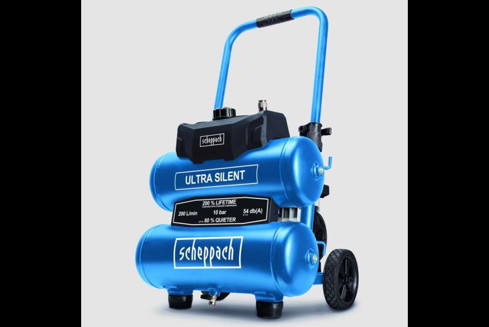 Damit in Zukunft das Arbeiten mit dem Kompressor mehr Spass macht und die Nerven anderer geschont werden, hat Scheppach nach zwei neuen, leistungsstarken Silent-Kompressoren nun einen Ultra-Silent-Kompressor ins Sortiment aufgenommen. Der Kompressor soll bei laufendem Betrieb Gespräche in normaler Lautstärke zulassen. Mit lediglich 54 dB Schallwert erleichtert der «HC20Si-Twin» die Arbeit in mehrfacher Hinsicht. Mit den beiden übereinander angebrachten Drucklufttanks, dem als Gegengewicht oberhalb der Räder platzierten 750 Watt starken Elektromotor und dem Handgriff fügt sich der Kompressor zu einem handlichen Trolley-Format zusammen. Damit ist der Doppeltank-Kompressor nicht nur leise und leistungsstark, sondern auch platzsparend und leicht zu transportieren.