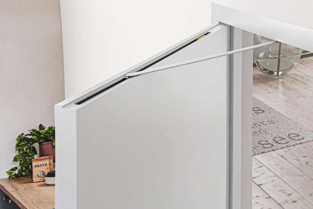 Manchmal braucht es klare Grenzen, auch beim Öffnen einer Tür. Bodenmontierte Stopper können jedoch zu Stolperfallen werden, und Wandpuffer stören häufig die Optik. Mit diesen Problemen räumt Basys auf und stellt ein neues Zubehörteil vor, das Türen zuverlässig auf einen vorgegebenen Öffnungswinkel beschränkt. Der Begrenzer ist bis zu einem maximalen Öffnungswinkel von 120 Grad einstellbar. Laufschiene und Gegenstück fügen sich bündig in die schmale Stirnseite des Türfalzes respektive in die Zarge ein. Sie schränken laut Hersteller die Höhenverstellung der Tür nicht ein. Der Öffnungswinkelbegrenzer eignet sich insbesondere für Türen, die in die Laibung öffnen und darum oft schon bei 90 Grad anschlagen.